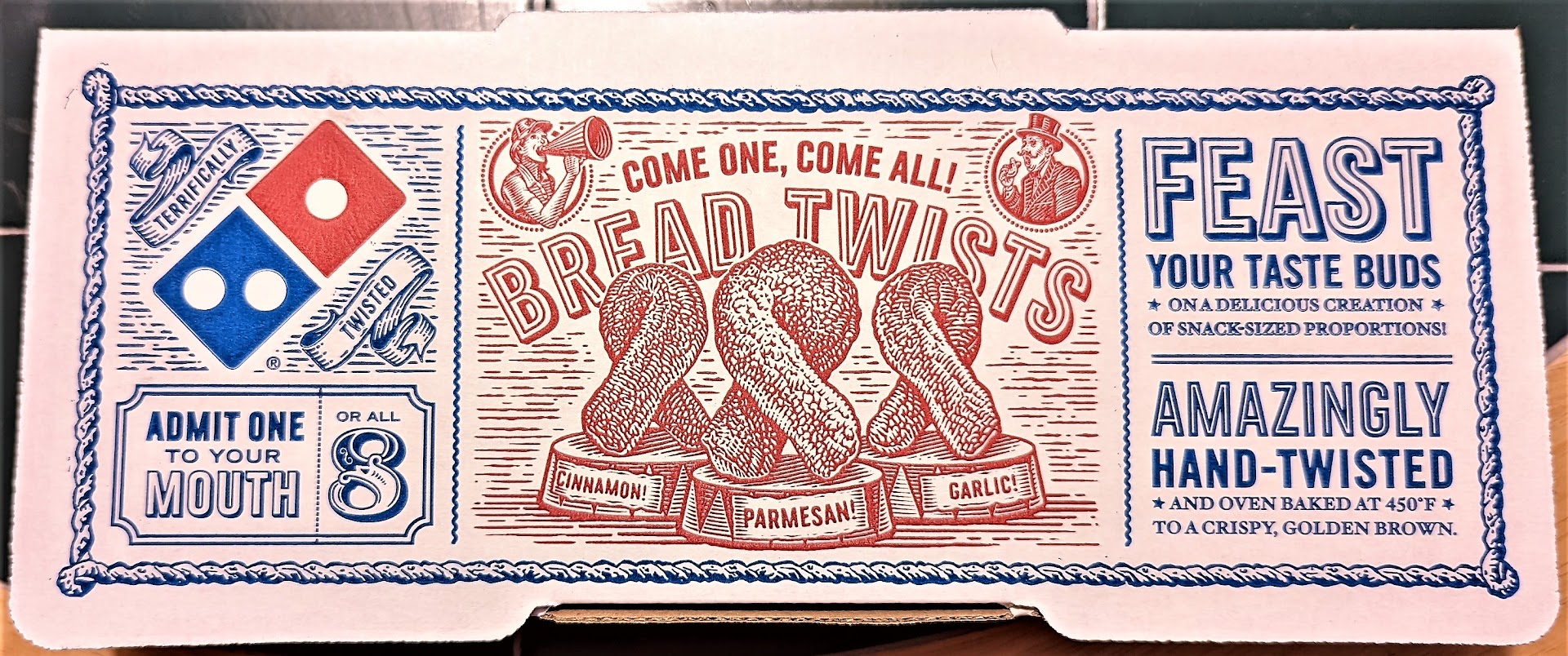 For both of these different orders, they were done online or through the Domino's app. Both orders included a few 12" pizzas with alfredo sauce as the base instead of marinara sauce, extra cheese, and extra pepperoni. Not all pizza places have a choice of bases, so I am glad they had alfredo as an option since I am not a fan of marinara sauce to begin with (heartburn). With the special noted above, there was no extra charge for the extra cheese and extra pepperoni. In addition to the pizzas, I had also gotten the 8-piece parmesan bread twists with garlic dipping sauce (you can choose what sauces you want). On the first order, we picked up in store, but for the second one, we did the car side delivery. The car side delivery option was pretty good too. Once you check in on the app, you put your blinkers on and then a two-minute timer starts. If they don't get it out to you in that time period, you get a free pizza on your next order. In this case, they were out there with the entire order in less than a minute.