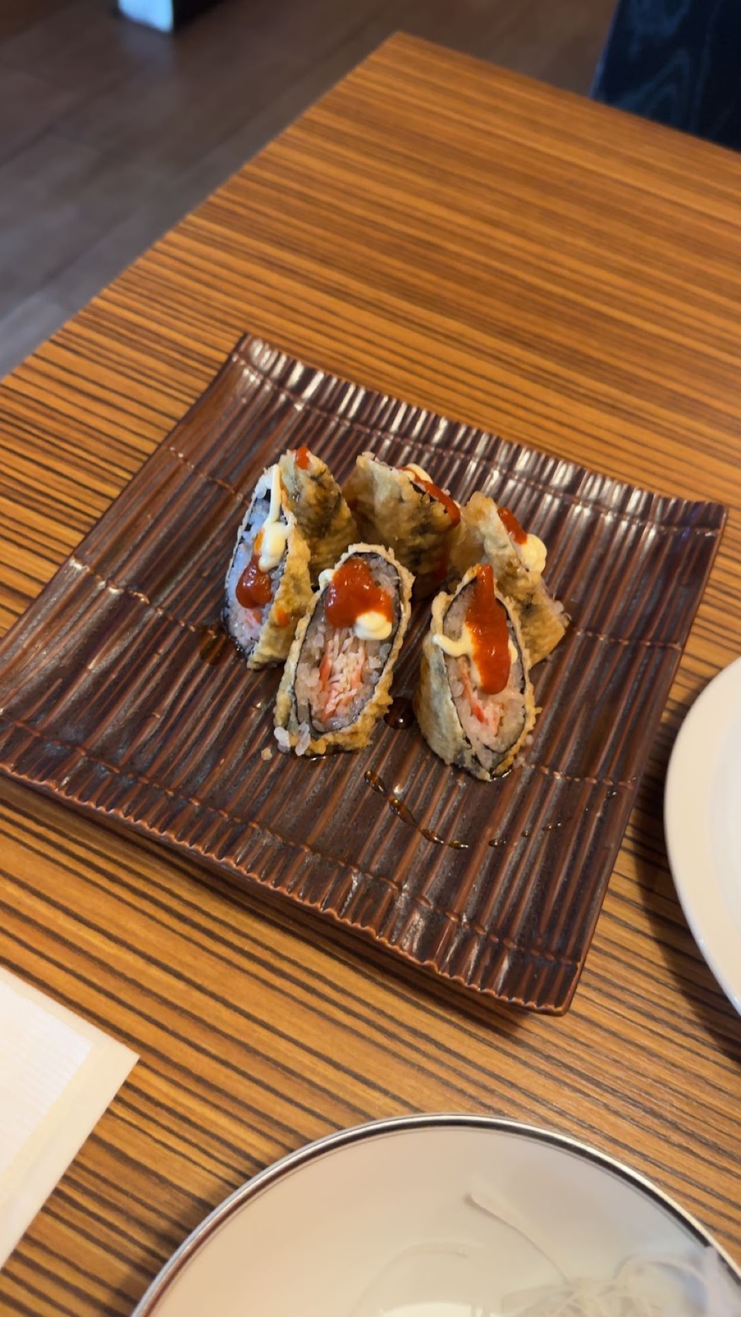 I ordered the vegetable tempura and vegetable rolls. I also had water as my drink. The water came first and it felt like it came from a sink. It was warm and the ice cubes melted in less than a minute. The tempura was cooked perfectly. The inside were soft, but not mushy and the outside was crispy. My vegetables rolls were tangy (I requested no avocado) from the seaweed salad. They were solid.