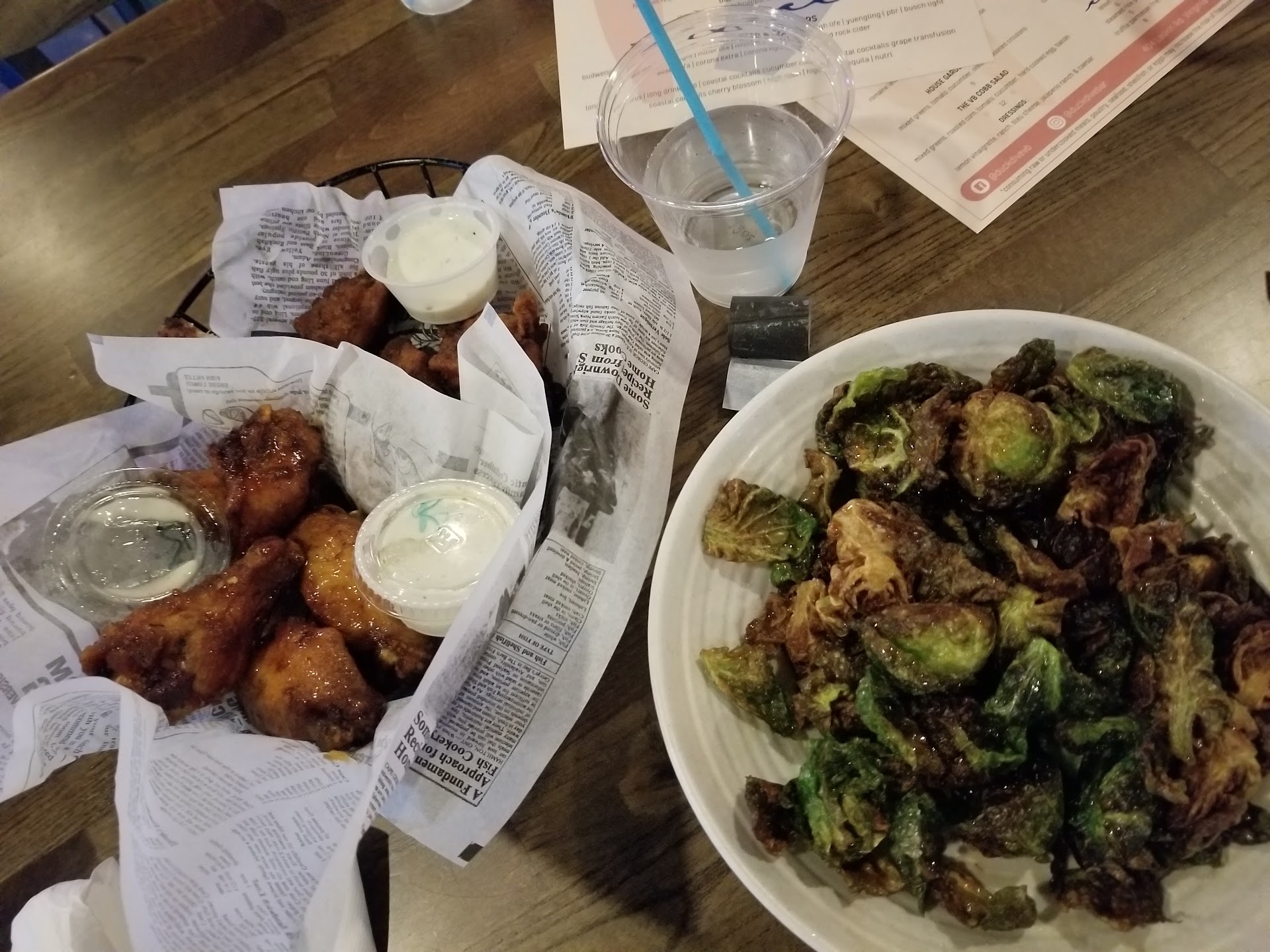 Read moreBefore I forget to leave a review — get the brussels sprouts!! They have some kinds of salty honey Sauce that I thought would need a touch of vinegar to be balanced, but they're fantastic as-is. I've ordered brussels at dozens of restaurants over the years, and these are top 3 in terms of both balanced flavor & doneness (think brussels sprout french fries for the single leaves and soft but crunchy halves; they gotta teach me their frying technique!!). We also got a dozen wings with half sweet chili & half Nashville hot (like 2/10 level heat, to very mild) plus ranch for both, and they were really good. My bf got a cheesesteak with truffle fries, which he liked, but as someone who has to eat grain-free, I appreciated all the rice-free, corn-free, wheat-free food options.