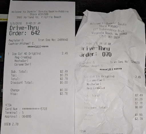 Read moreWhere do I even begin? I have been frequenting this location for quite some time now, so I think itâs safe to say that this is the WORST Dunkin Donuts in Virginia Beach, and I will not be coming back. There have been countless instances where I have waited 15-20 minutes for an order at the drive through with only one other person in front of me. The last time I came in it took them 20 minutes to heat up my sandwich because their âoven wasnât working.â Thereâs ALWAYS an excuse and the owner cannot seem to tend to his store properly. When I went in, the AC was broken, the toaster ovens were broken, they served my friend her iced coffee in a hot coffee cup because they were out. Theyâre always out of cups and can never restock properly. They have been out of numerous menu items and cream cheese spreads. Like I said, itâs always something or theyâre seemingly always out of goods to serve. Although it is close to home for me and is in a convienant location, I will not be spending any more of my hard earned money at this joke of a coffee shop. The cherry on top of it all is the customer service, or lack therof that you received. During my last visit, I kindly asked the young man working where the breakfast sandwich I had ordered was as it had been over 20 minutes. He gave me some excuse, then 10 minutes later, slammed my sandwich down on the counter without even acknowledging me. This place is such a joke! Never again. Youâre better off going to Starbucks directly across the street. Edit: attempted to give this place another shot about a couple weeks ago. The employee informed me that they had ZERO coffee at the moment. I laughed while...