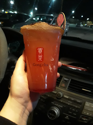 Read moreSuper excited Gong Cha has come to VABeach!! This is a very popular brand in Taiwan - to me that means it's good quality and authentic! Got the milk tea with boba, grass jelly, and aiyu jelly, a passion fruit green tea with grass jelly, and a peach smoothie. The milk tea was delicious, very clean black tea flavor. I was surprised even at full sweetness it wasn't super sweet. The grass jelly has a good herbal flavor, the aiyu kind of got lost in the mix, and the boba has a good chew and is slightly sweet.The passion fruit green tea tastes exactly as I remember it. I was surprised the grass jelly floated, next time I'll get basil seeds. The peach smoothie also has a different flavor from American peach, idk why it reminds me of Asian candies. The creative menu has some really great items on it and the egg waffles look really good too. The shop is cute and comfortable and they have WiFi and board/card games on hand. My only complaint is the point card system is specific to your credit card, so even if I ask them to add the purchase points to my account and show my qr code, if my bf pays the points don't get added. It's a bit...