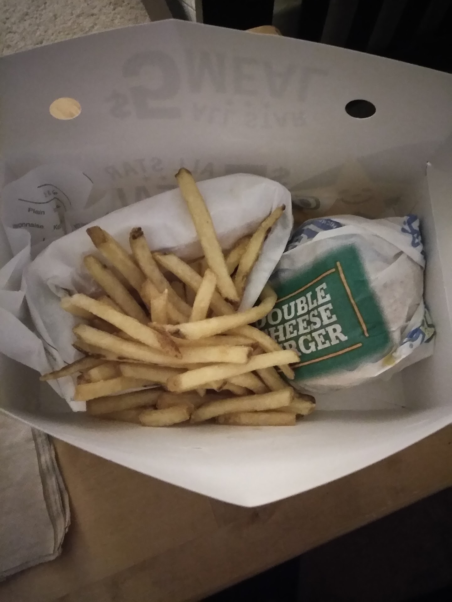 Read moreAbsolutely horrible experience. I'm the only person there at 2:30 or so, one of the employees stepped out and rolled their eyes that I'm coming up as the first customer, so they put a cigarette out with their fingertips, huffed really loud, never went to wash their hands when they went in. When I had asked to have my burger replaced because it wasn't double patties (total tax was insanely high at this location, btw), same employee walks up before making the new burger, points at the old one with this annoyed look and when I say I'd rather keep it for my dog and I already ate some of it, he reaches further and I hand it to them. They quickly turned into the kitchen, threw the burger into the bin as hard as possible. The new one was hardly an improvement. Fries were chewy, half stale, like old crinkle frozen fries. No air conditioning, and half the reason I went in was to relax and cool off. I felt the opposite. The rancid old oil smell and trash all over the soda area (without any condiments or napkins) that already was offensive enough. There were also flies and gnats, because why not add insult to injury?