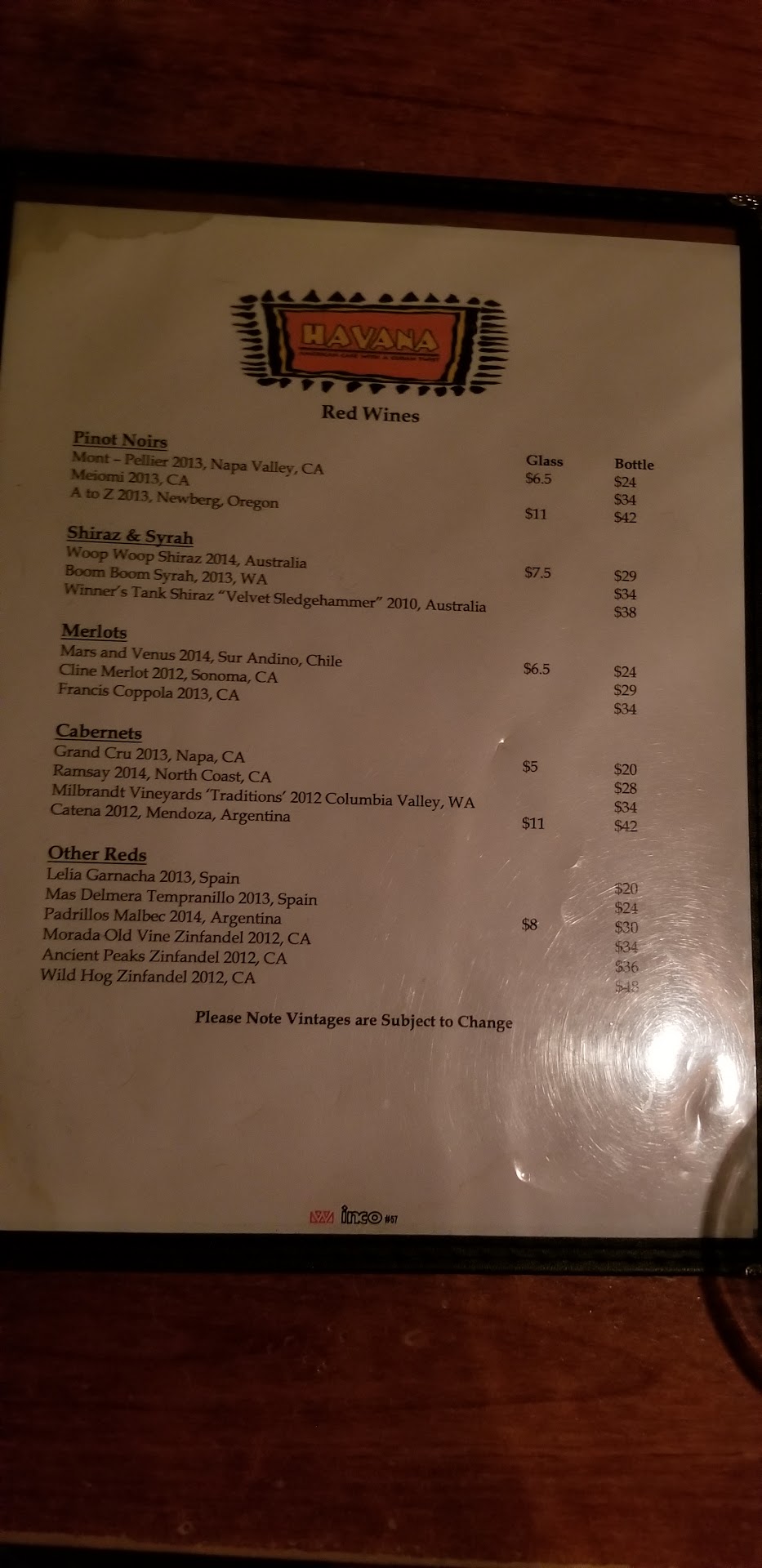 Read moreLast night was the second time in the past 2 months that we dined at Havana on a Tuesday night (great buy one get one special). I'm sad to say it will be the last. Last night, just like the previous time, there was only 1 server (she said she was called in last minute after someone quit). She accidentally put my order in wrong and was very apologetic, but it took forever to get my food. When it finally did come, it was served by the manager/bartender, who gave me the stare down while handing me the food like it was my fault. And the food was not good at all. The filet was definitely rare (I ordered medium rare), the potatoes and sauce not flavored well, and the asparagus barely cooked. The quality of the meat also seemed different, and my husband's meal had rice that was undercooked. Well, we thought, at least dessert can make things better. Nope. We ordered the bread pudding, which was supposed to be caramel flavored. That also took forever to come, and was cold. And I'm not talking about the ice cream being cold, I'm talking about the bread pudding itself, which was hard and cold, with no sign of caramel. The most disappointing meal we've ever had there. It appears their staffing issue extends to the kitchen as well. I hate being critical during these times, but also can't spend my money on subpar food and service during...