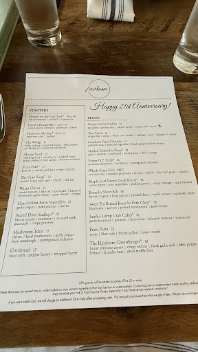 Doug ( spouse) and I tried a newer restaurant tonight that we have not been to called Heirloom Restaurant Va Beach for our 21st Wedding Anniversary.