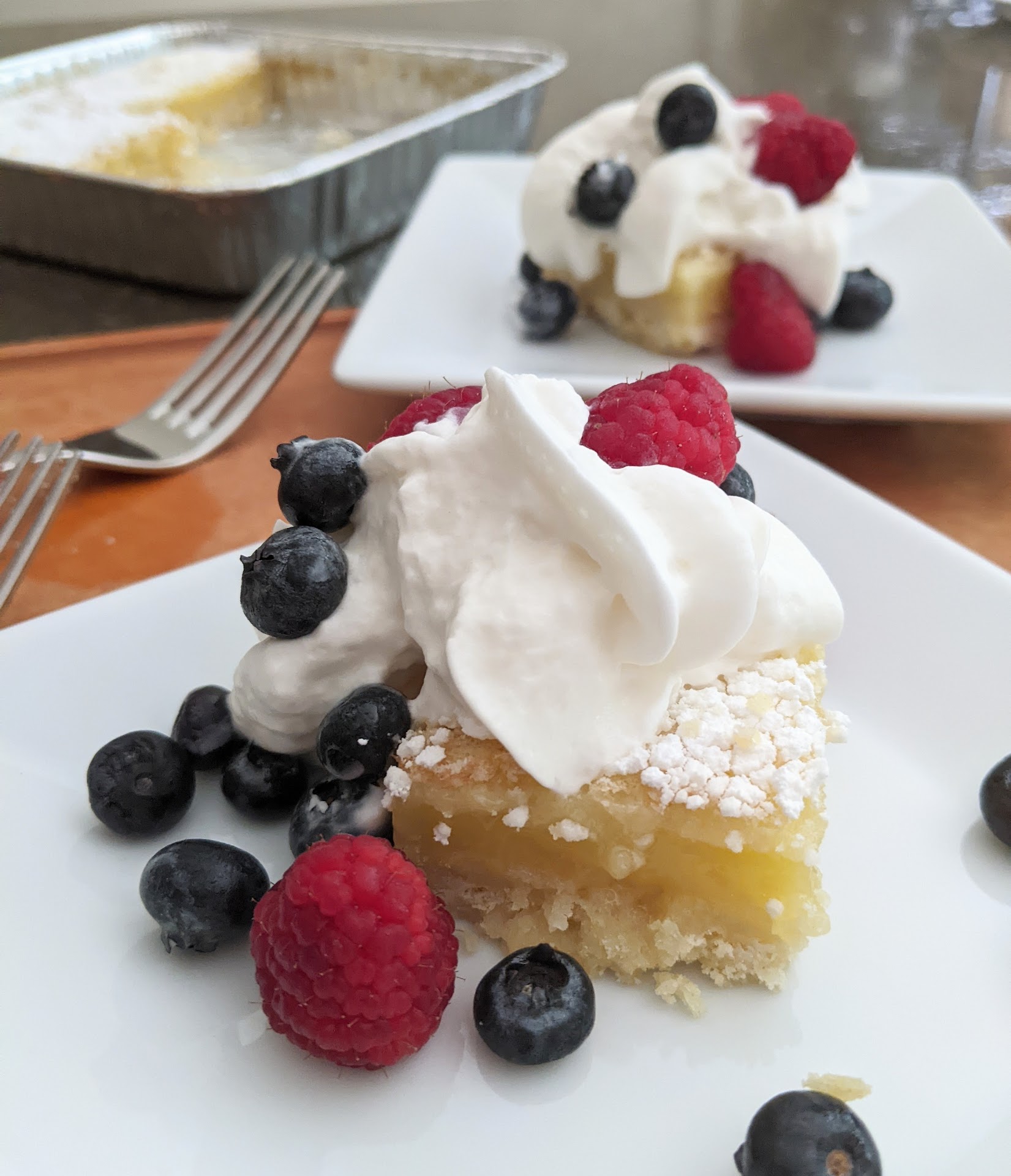 Original review: Their lemon bars (just $8 for an 8x8 tray) are made with the same wholesome ingredients I would use. Hit the farmers market across the parking lot for fresh berries if you can. Raspberries amp up the lemon flavor, and Chantilly cream takes the sweetness from the generous coating of powdered sugar down a notch. The perfect early summer dessert.