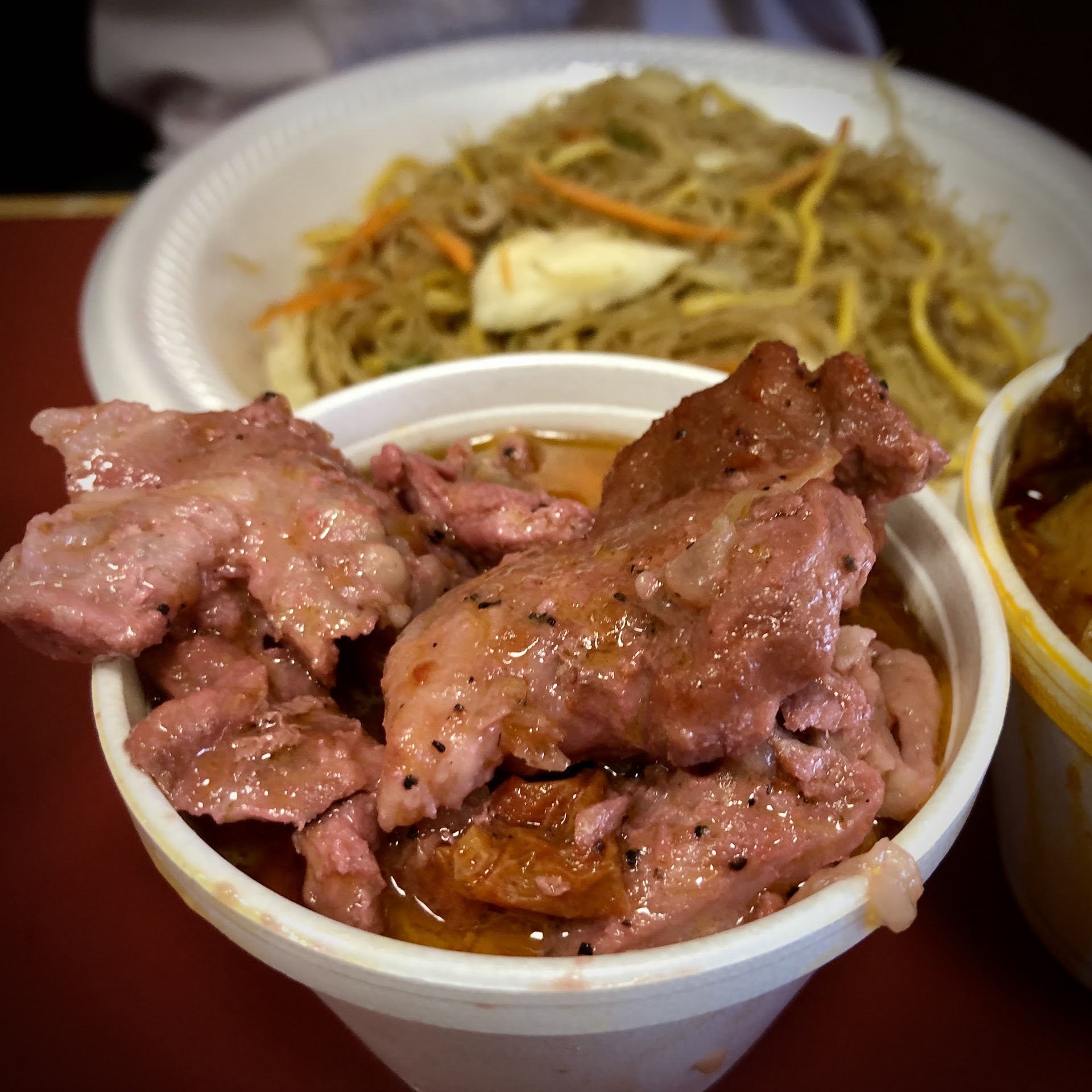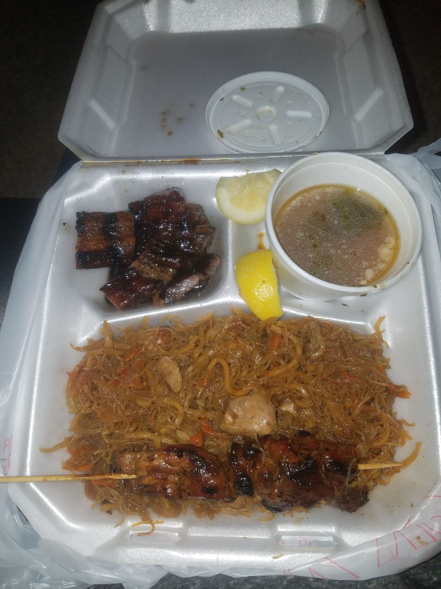 Read moreIhaw-ihaw restaurant is good enough, authentic enough, and authentically greasy Filipino cafeteria. It would have been better experience for us if they actually have all the things posted on their menu like the lumpia, sisig platter, crispy pata, and steamed siopao. So, we ordered pansit platter which is supposed to come with lumpia, but they were out. So, it was subbed with pork adobo. We also ordered two of the 2-entry platters, and we picked all pork dishes: binaguongan, dinuguan, menudo, and sinigang broth which also came with 3 cups of steamed rice. We have a go to Filipino cafeteria, and we pretty much base our judgment with their cooking because they are really good. Comparing Ihaw-ihaw with them, Ihaw-ihaw is cheaper, but servings are smaller; place is not as crowded, yet the service is very slow; food tasted okay, greasy, but not salty which is a plus for me. Also, their pansit is not as good; it’s very bland. Will I be back? Yes, especially if my favorite place is packed and very busy. Ihaw-ihaw has the potential to be as good with menu updates and effective scheduling of servers. And yes, we got prepackaged desserts, ube sweet rice cake(Biko), palitaw (pinoy sweet mochi) and cassava cake the coconut juice in can for drinks. So overall, this place is good and...
