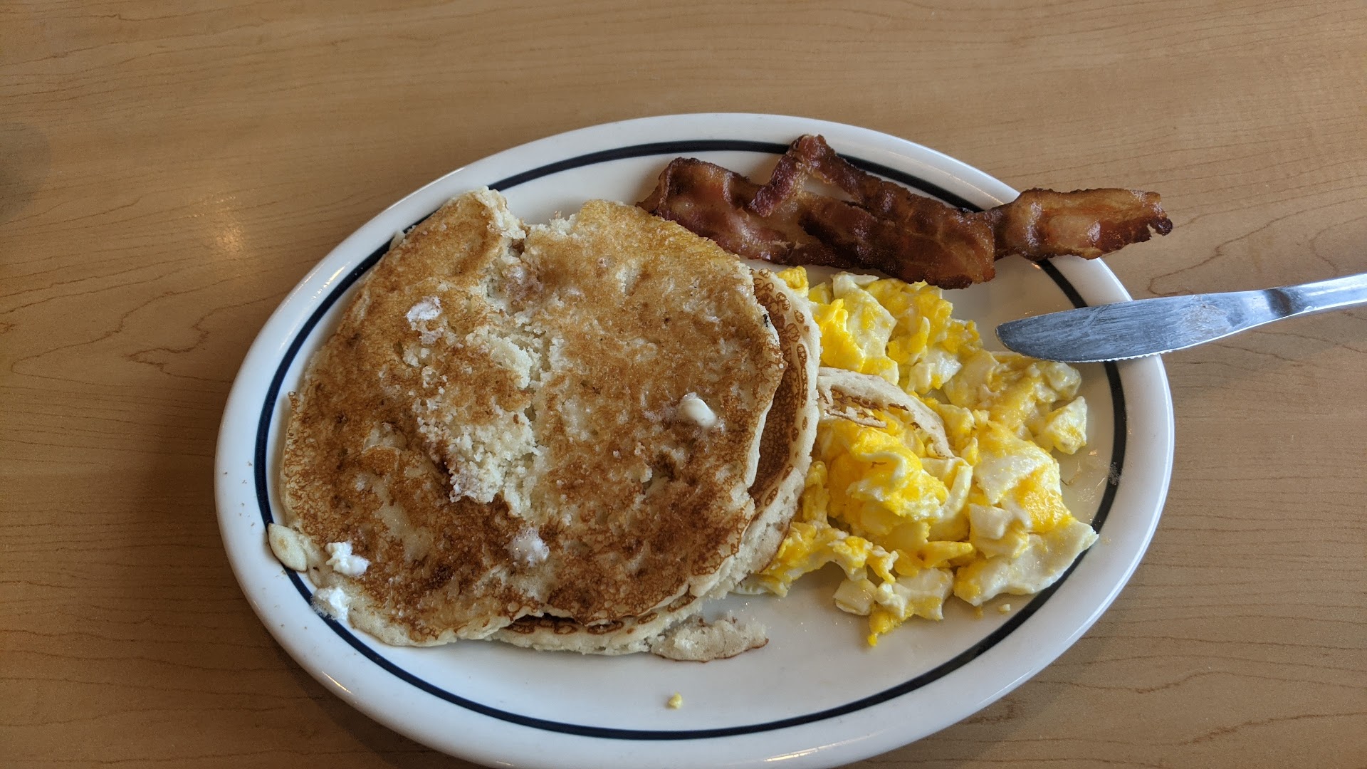 Read moreBy far not the best visit to an IHOP. Not sure how it could get this bad but... BTW, Sorry for the short novel but I needed to explain things. First off, it was kind of busy and we waited for 20 min before being seated. That didn't bother me. After being seated, it took another 10 min for the waitress to even acknowledge we were seated. That was pretty annoying. After 10 minutes waiting for our coffee to even arrive, another couple were seated near and the other waitress got took their order and got them coffee right away. Getting more annoying by the minute as another 8 minutes after they were enjoying coffee I was finally able to flag our server down and ask if we could at least get our drinks. 8 more minutes passed before coffee and drinks showed up. Almost a half hour to get coffee after waiting 30 minutes before having a server show up. As if it weren't bad enough already, it took another 10 minutes after that before our food would finally showed up. I ordered the Spicy Pablano breakfast burrito and my wife ordered the Split Decision and we added a take out order of their Bacon Cheeseburger and fries for my brother at home. My order is supposed to come with serrano peppers, avocado, spicy Pablano sauce, scrambled eggs, cheese and spicy shredded beef, salsa and no hash browns in the middle as I didn't want them. It came without serrano peppers, no avocado, no spicy Pablano sauce and no salsa. BLAND AS HELL! Wifes food came out perfect and she was chowing down. After another 10 minutes I was finally able to flag our server down, explain what was wrong and she called over the manager. He saw right away they gave me the wrong order. They said they will expedite my order again. After 13 more minutes, the server brought my plate out. It was the exact same thing as what they originally brought out. I told her that and pointed out what it was missing on a menu and she spouted off loudly that they are out of avocado. Ok, so where's the rest of the stuff. She said she'll go get the manager. After 10 more minutes passed, my wife is almost done now, I saw the manager and agged him down and told him about my food. He apologized and said he'll go back to the kitchen and ensure my food I ordered is cooked and delivered. Annoyed as hell, I just told him to forget my order and remove it off my bill, get me our to go order and the check. He came back 5 minutes later and told us he put the order in for the to go order and comped us for that one too. The server never put the to go order in. 15 minutes later the to go order showed up.