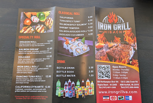 Read moreMe and my family came into this restaurant just days after their opening. We were welcomed upon entering and the lady worker helped us out with our food order. The menu was organized and easy to understand. The food we ordered was exactly what we have come to expect and it left us with happy stomachs at the end. Some of us are from the Chicago suburbs and we know how great hibachi restaurants are there. And Iron Grill is just as good! I highly recommend any locals or tourists to come in and enjoy fine dining or takeout food. I will definitely...
