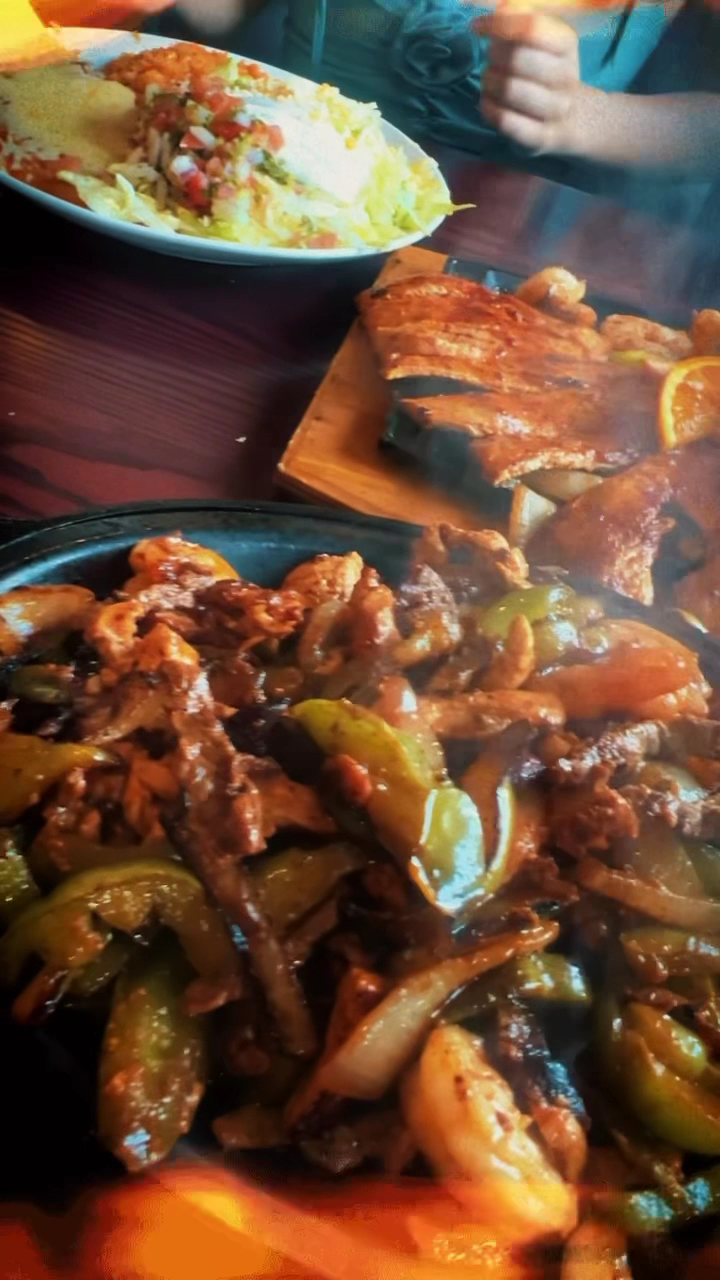 â˘We ordered the Mix-it-Up (chicken, steak and pork) , chicken steak shrimp fajitas, House margaritas, 32oz Beer!! HUGE. Our meals were big and super Flavorful.