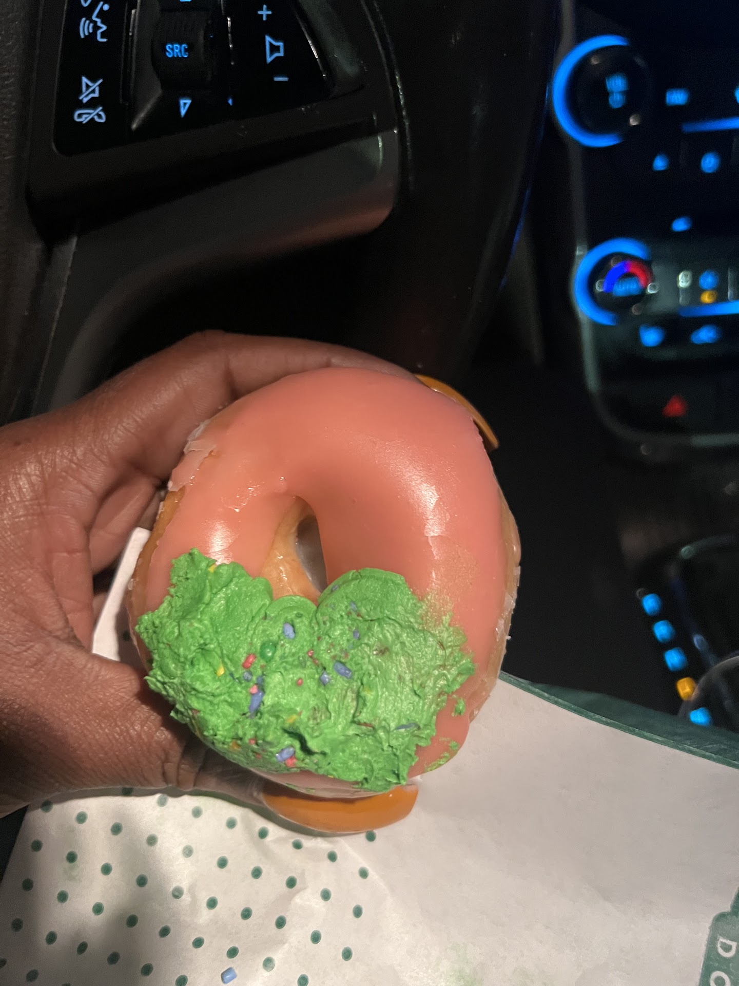 This Is a great Krispy Kreme. The donuts are always hot and fresh. They make your box right after you order. The drive-thru line is often long but I usually order on the app and walk in to pick up my orders. I was standing in the wrong line yesterday and one of the employees overheard me talking to the cashier and made my order so it was ready as soon as I got back up to the counter. That is going the extra mile and providing thoughtful service. They also offer to put your order in a bag. They donāt waste bags by automatically bagging your order but they do offer bags. I only take a bag if Iām getting more than one dozen. The bags are sturdy, high quality and spacious enough for multiple boxes to fit in them. I always save the bags and reuse them. They are great fro taking items to the thrift shop or collecting recyclables.