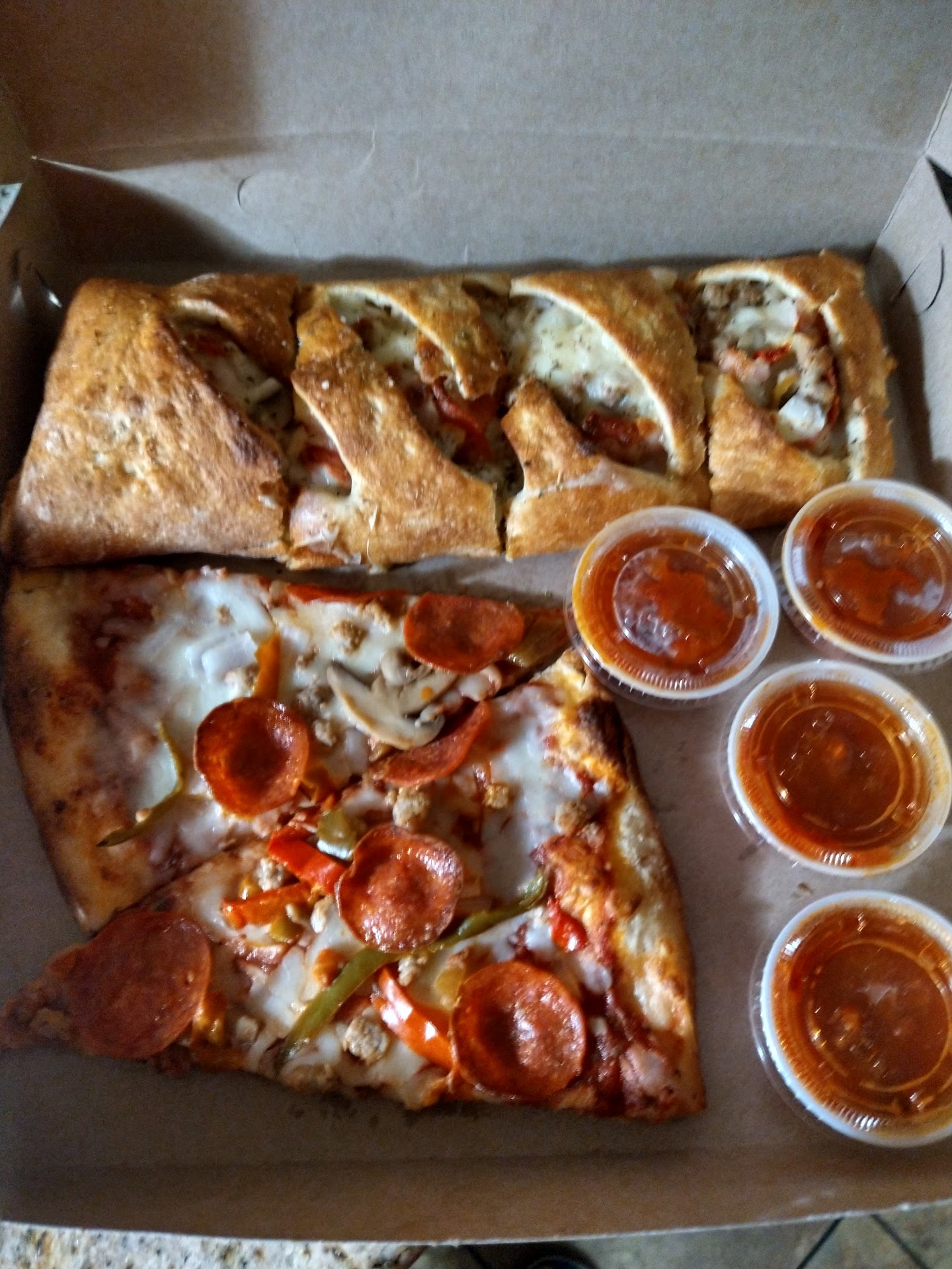 I had been seeing advertisements on FB for this restaurant and after a shopping trip to Target, I decided to give them a try. When I called to see where at Hilltop they were located, I was thrown off by the plain "Hello" I received when the girl answered the phone. No mention of the restaurants name or anything. I asked for directions since I was so close to the Hilltop area. The girl on the other end of the line couldn't even give me good directions to get to the restaurant. I could not find them and the GPS didn't locate them either.....SO, I called them back and placed an order for delivery since I was also trying to decorate for the holidays. She didn't give me the Order total, even after asking "How would you like to pay?", and I said I wasn't sure if I had enough cash on me. I took the chance that I had the cash when the driver arrived. It took an entire hour for the driver to arrive (I'm within 2-3 miles of the hilltop area, if even that far). She was pleasant, didn't know the exact amount of the order either (the receipt was in her car though). The food was okay. I wouldn't say it was AMAZING or anything. The stromboli was not warm, and it was VERY thin on toppings. The marinara is a little sweeter than what I typically like, but it wasn't terrible. The spaghetti was just OK, the meatballs were very bland and very dense. I would like to think mine are better. Overall, not a terrible experience or terrible food. Just wouldn't go out of my way to order again. The phone etiquette/skills...