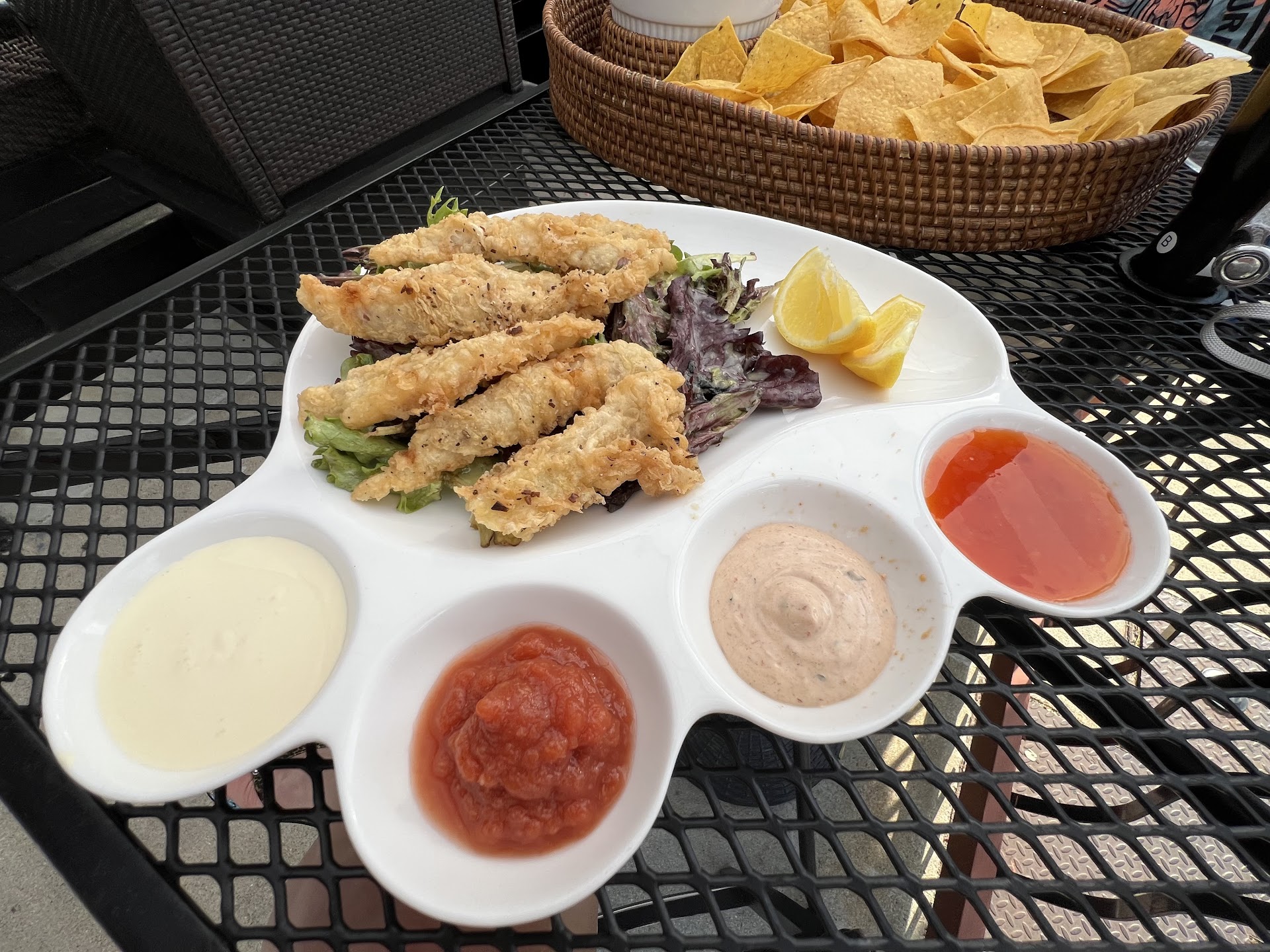 The menu was shorter than usual [expected] but there were absolutely no lunch items! We asked if there was a regular menu and were told not yet (dinner?), so Strike #2. More on my thoughts later. So the wife decided not to eat, and ordered a second BM with Old Bay this time. bartender said they didn't have Old Bay but had a sweet chili powder that she could use, so she opted for that. *look at the drink menu and note all the references to Old Bay. If you're out, swing by Wal-Mart and grab a few cans so you can make the drinks as described.