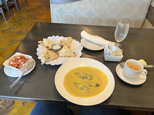 It's really the food that saved them from getting a lower rating! My husband and I got their Pavbhaji Spiced Samosa for appetizer and their Chicken Curry with Garlic Naan for our main dish. Everything was delicious! The curry was a tad bit spicy but we did order it medium, so if you like a lot of spice then get it that way! Other than that I'm sure mild would have sufficed. Their samosas were perfectly seasoned and the filling was just the right amount. The garlic naan was the perfect pairing with their curry dish also.