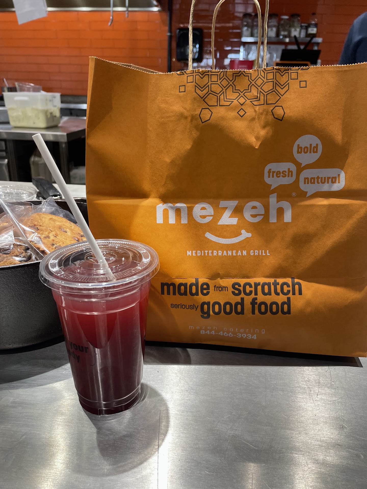 I got the chicken shawarma bowl and my husband got the steak shawarma bowl. The chicken is seasoned beautifully. It does have some spice to it. I can't really do spicy but I could eat this and I would order this again. Typically I put a white garlic sauce on my shawarma. They have one that's a lemon garlic that is delicious! The Turkish salad that I put on my shawarma was delicious as well! I did try the steak shawarma it was cooked well nice and tender and the seasoning was on point! The only thing I can't give a raving review about that I tried was the pita. The pita I received was flat and cold. The extra one I ordered was warm but still pretty flat. It would like it if it was a little poofier so that way you could stuff it easier with the shawarma rice and all the fillings. One other thing I would like to note to anyone that has never had their juices before. There will be little black seeds in the bottom of your cup. That is okay. It is just because they're using real fruit!!