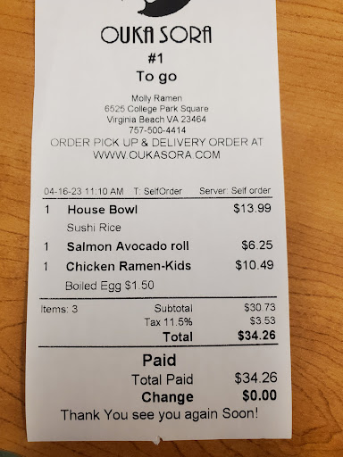 Now for the food..HORRIBLE, I ordered a sushi roll salmon avocado, house bowl (poke) with sushi rice, and chicken ramen. The staff put some rice in a bowl then squeezed some sushi rice vinegar (i believe that was what it was)on the rice. That is not how to make sushi rice. With the actual roll, they just used plain white rice. No taste at all for that roll. I will say the chicken ramen that I ordered, ramen was good, broth good, and chicken was not grilled but rubbery boiled taste with marks that looked grilled. It was very expensive and will...