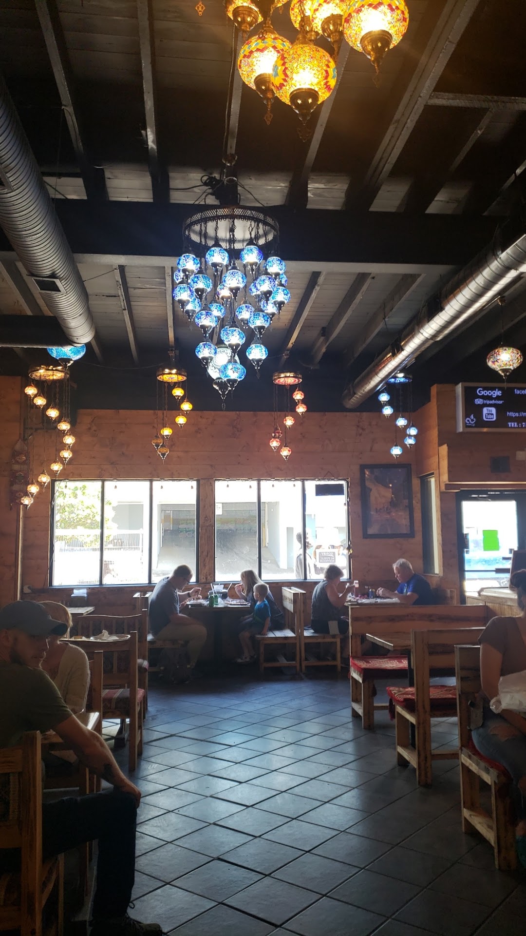 The interior is magical with colorful lanterns, ornately decorated tapestry, and Turkish drinkware on display. The menu is large and just as bright at the ordering counter.