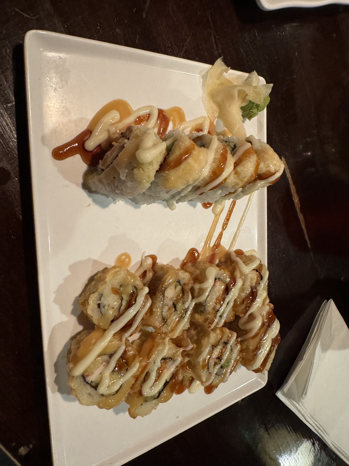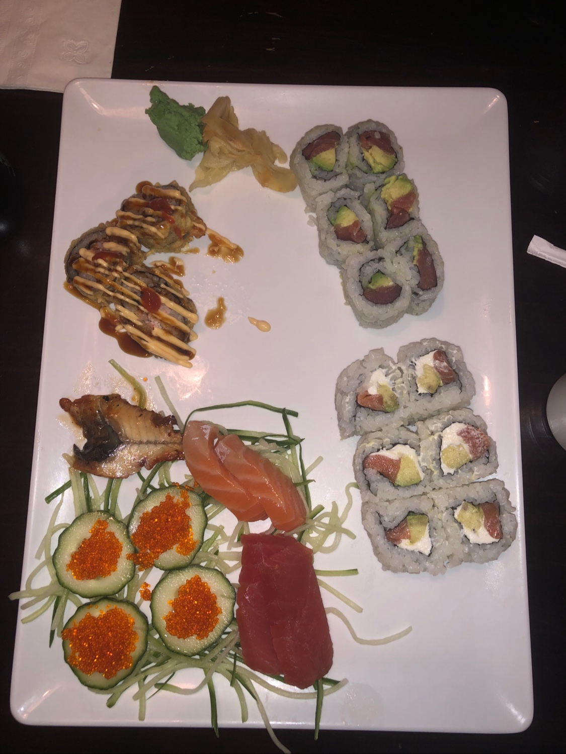 Read moreWent here very frequently before COVID and never had any issues here. I have now been here twice since re-opening and the service is terrible. I went in today with a coworker, just the two of us. Three wait staffs on the floor with maybe four tables. I had to ask for a sweet tea twice, both times receiving unsweet tea, and eventually going with a Coke instead. One girl on the floor was our starting waitress. When my first sweet tea was wrong, I tried to get her attention twice, instead she was on her phone leaning up against the front counter. When we made eye contact and I waved to her, she turned her back to me and continued on her phone instead. They gave us all of our sushi on one big plate, which was fine, but the male server told us he was going to bring us plates. We never received the plates. No one came back to our table for at least 20 minutes. The food is decent, but not worth the service you have to...