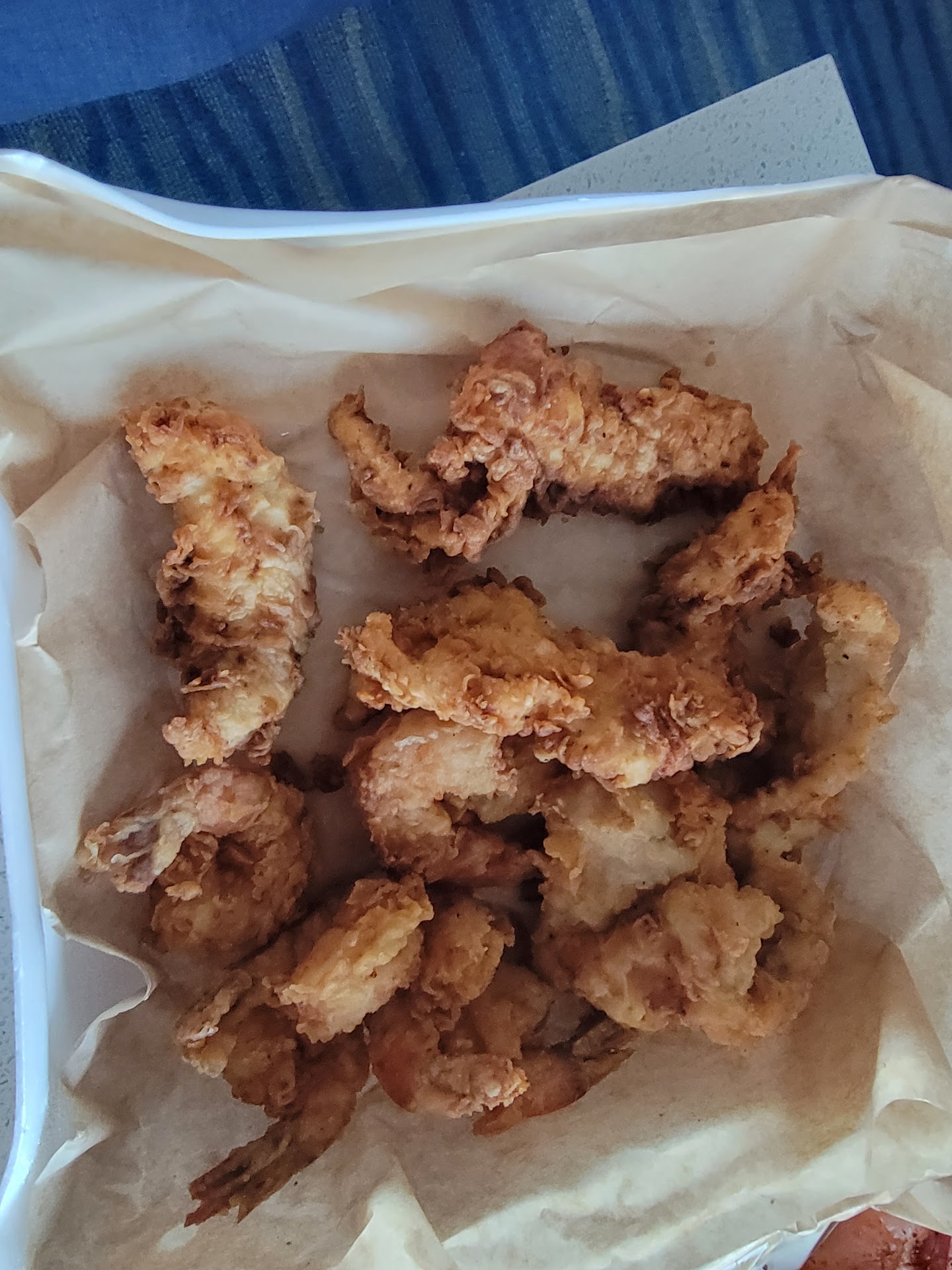 The fried food itself was fresh, not overly seasoned or breaded or oily. The steamed shrimp was also good. One or two seemed a little mushy when peeling but overall we enjoyed it with the really good sauces we were given.