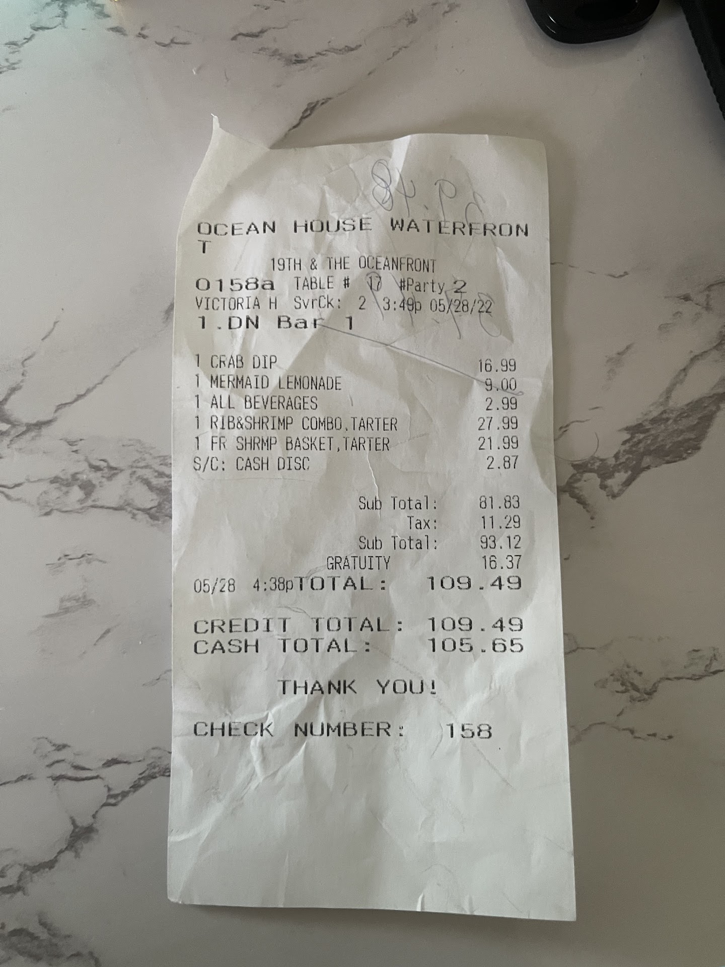 Upon seating she didnât say her name, barely visited our table, didnât refill my mamaâs drink and wasnât pleasant. Thatâs not the major issue; as you see our bill has two different totals: one if you use a credit card, second if you pay on cash. I asked our server if gratuity is added for just two ppl. She immediately responded and said bc of the Memorial Day weekend all bills automatically are added gratuity. (If that were true she didnât say that once we sat down)