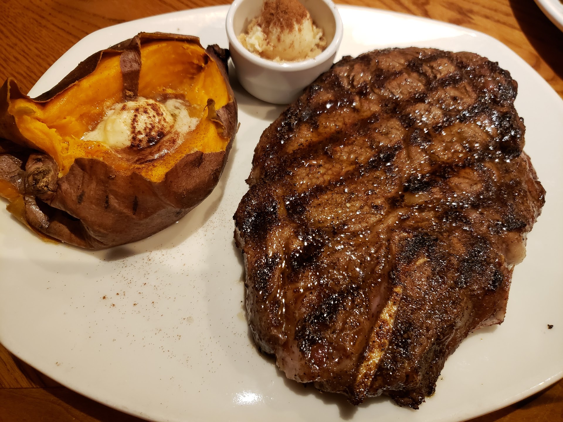 Then, I tried the NEW Carmel Mustard Glazed Pork Chops, (you get 2 8oz pork chops) and I also had a Baked Sweet Potato and Broccoli. Every item was cooked and served hot and to perfection. I really like trying new menu items.