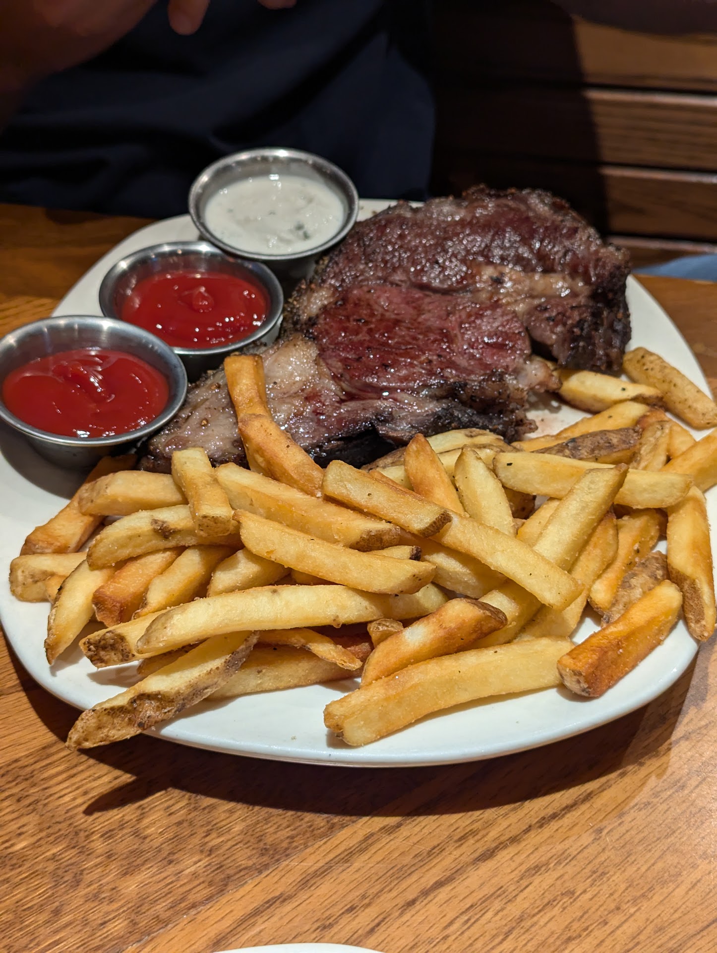 Read moreWorst service I've had in many years. We asked for waters to start while we check the menu. 10 minutes later she returns to take our order and mentions that we are still waiting on our drinks (water??). We ordered 2 drinks from the bar, an app to share and two entrees. When she returned with the bar drinks we still didn't have water. When we asked, her response was, "oh that's not my job, I'll ask about it.". A few minutes later someone from the kitchen brought us water. The same person brought us all of our food. Appetizer was great. Wife's meal was excellent. My prime rib was severely overcooked (medium at best but was really medium well when ordered medium rare). I waited for the remainder of the meal for the waitress to return to check on us to send it back. By the time she came by (20-30 minutes later), both of us were out of both our waters and bar drinks, and my wife had completed her whole meal. She seemed surprised that I just wanted to send it back at that point and have it taken off the bill instead of ordering a new one.