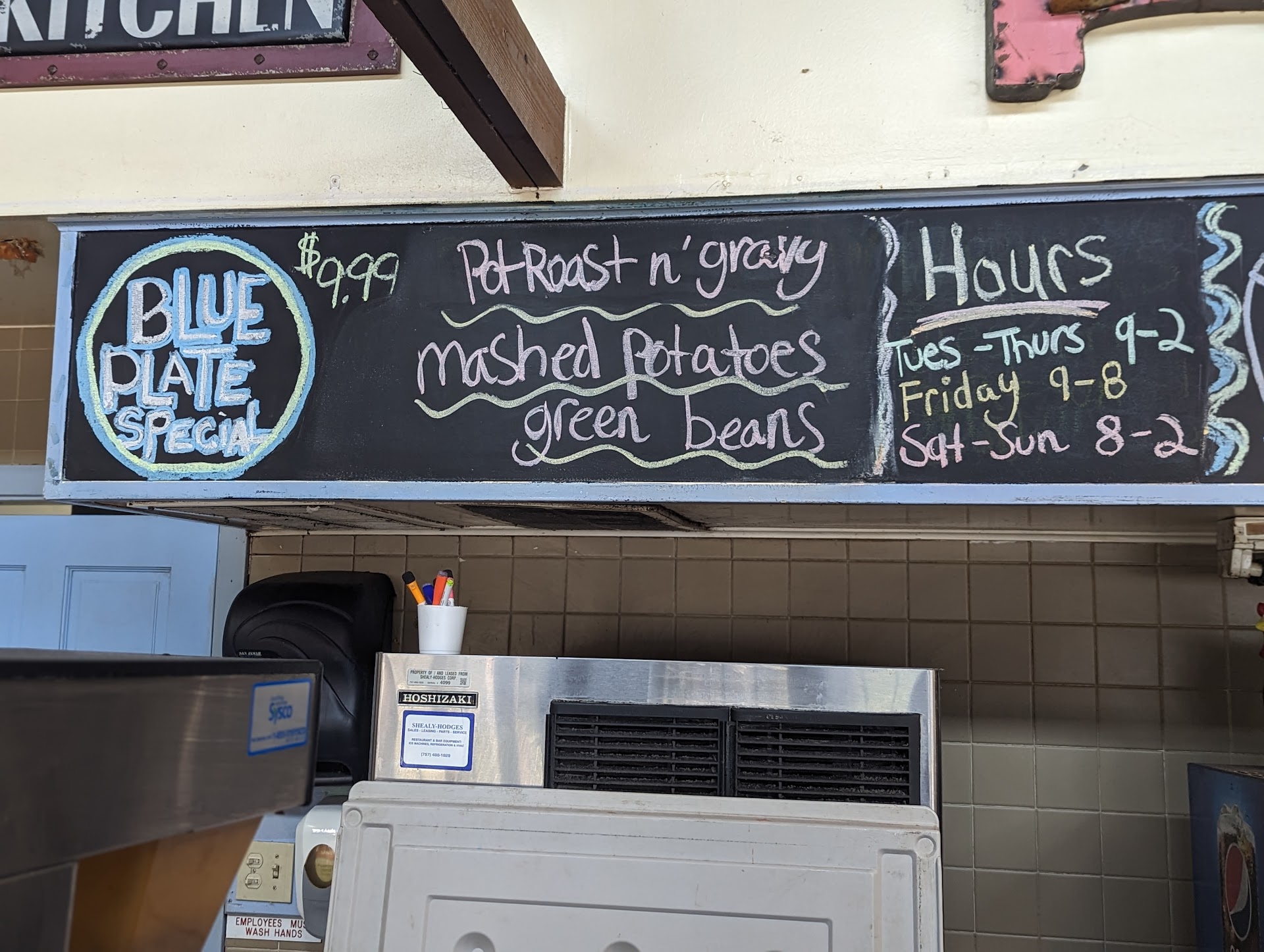 Overall, it was okay for us, but nothing that would wow me into a rating higher than what I have rated today. For the amount of turkey that was on the blue plate special, it wasn't that big for $9.99 as it was just one slice of turkey. Even though I am local, I don't come this way too often. I did have the feel that the place could also be a bit of a dive, as there were many locals that the servers were talking to as they come in or out. It's possible that it may have been an off day there on this visit, but I will try them again in the future to see if this visit was not the...
