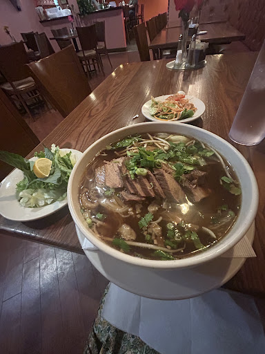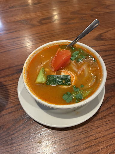 Am not too sure. With all the 5 star reviews this place looked empty from the outside, on a Friday evening! You get seated right away of course. The decor is definitely Thai. There were just 4 more people to the corner. You get complimentary small salad with greens, shredded cabbage, julienned carrots, a slice of tomato, the ginger sauce was weirdly strong like artificial ascorbic acid mixed in. I ordered the beef noodle soup, maybe a good one to compare with other cuisine versions. I wanted to try the curry dishes but call me living under a rock I still get sticker shock when. I see an entree priced at $20. I ordered the beef noodle soup. What’s noteworthy is the aroma of the beef broth, seems to have been simmered for a long time. Definitely a 5. It was a huge portion, definitely enough for 3 meals. And with all considerations of ambiance and value I give...