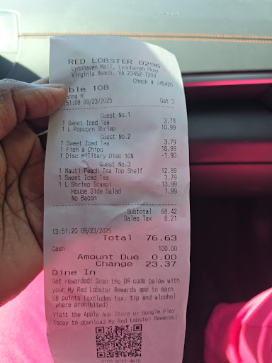 Had a reservation at 6pm and was told to wait for fifteen minutes. Finally got a table and ordered our meal and was made to wait for over an hour for our food. The server we had was on point with being attentive to our table. But I don't know if they are understaffed or what but there professional attitude to a good meal experience is subpar at best. If you like wasting your time come here,I for one have better ways. But in truth 1 star is very gracious if it wasn't for our server this place would get a zero out of five. We were here to celebrate my best friends 10 year wedding anniversary and other than enjoying each other's company none of our party enjoyed this experience. Well for an update on my dining experience here red lobster the manager was brought to our table And my mother described that the lobster twin tail menu item was way overcooked I mean the food was inedible for my nannays experience, For she is on a special diet regiment And can only eat certain items for her choloric intake. The manager was very understandable and comp the seafood trio off of the overall price of the total of our bill and took the twin tail lobster meal and wen remade it Without any hesitation. Again I reiterate that if you want a very bad dining experiencome to red lobster on lynnhaven Parkway in virginia beach next to Lynnhaven mall. For my personal tastes I would recommend either chic's bar out on shore drive or Bubba seafood on West Great Neck road. I for one don't recommend this place at all for anyone wanting seafood or a dining experience worthwhile. Google reviews are lucky I can't leave a 0 star on this review because that is what it deserves. And furthermore is the 2nd time I've been here for an occasion with my best friend and sudo dad And each time it was a poor experience but since my friend/dad is very important to me I just go along with the flow just to make him happy but each time it has been a failure on the staff Here at this restaurant. And a quick tip bit for anyone that wants a dining in experience from this place get a to-go order because it will be way faster in my opinion For this place might as well be a fast food joint Because this place definitely isn't worth the 4.2 stars it's rated as on Google as a restaurant or family get together! These people need to go ahead and relearn what it is to be restaurant professionals because I think they have lost touch in their humanity for better service bad red lobster bad You can do better you...