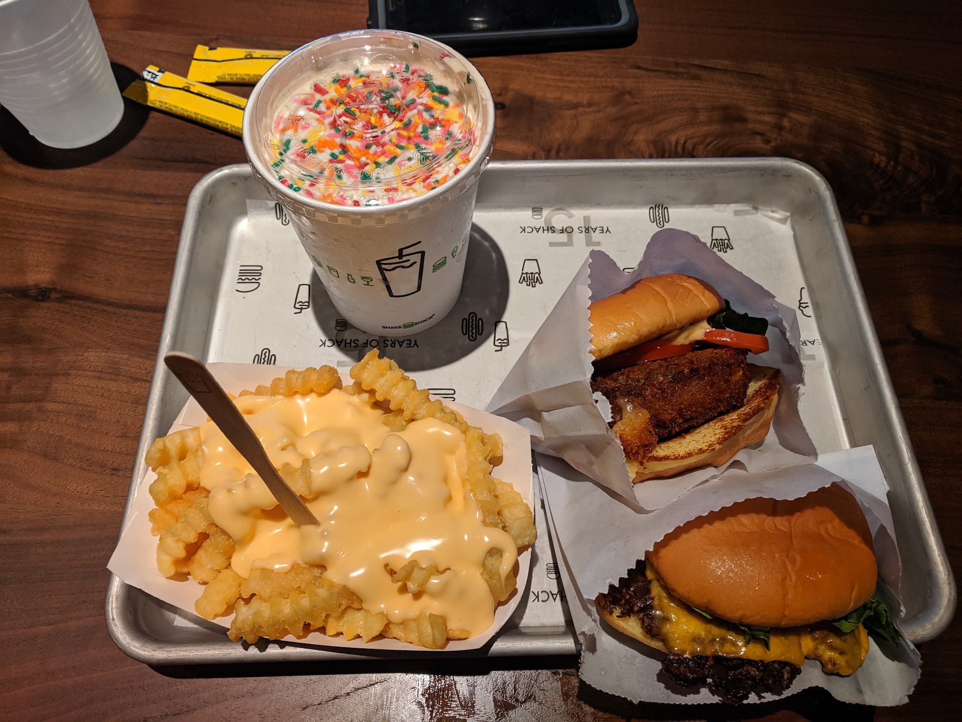 I went there this last week and this was my first experience with any Shake Shack in my 30 years of existence. I went there with my wife and daughter, and we were looking forward to it. I'd heard great things about the chain and was in the mood for a burger so we checked it out.