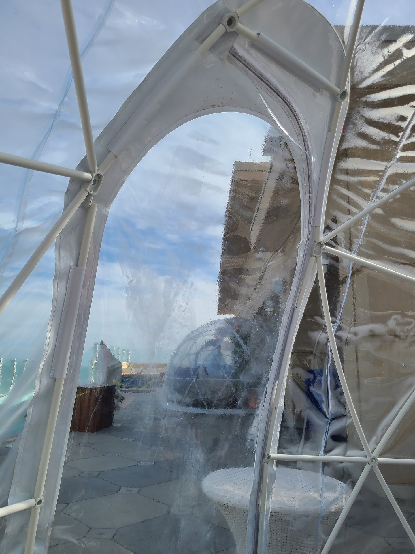 Read moreWe went to the igloo lounge for Valentine’s Day and paid $100 to reserve a month in advance. The igloos not exactly secluded. I could hear the ppl next to us 20 feet away talking and partying. And the ppl from the hotel pool could see right into the igloo. It wasn’t that big of an issue. There is barely a view. You can’t really see anything unless you’re outside the igloo. Now the igloo itself was cold. The heater barely got above 57 degrees the entire hour & 45 mins even though we set it at 75. The food was not good at all. I would give it a 4/10. It wasn’t nasty but it wasn’t good. We probably had 4 shareables since there isn’t entrees on the menu. Drinks were a little better like a 6/10. Service was amazing, I can’t remember the servers name but she was attentive and nice. There is 18% grat included but we still tipped additional. All together 4 shareables 2 drinks tab was about 130. Probably will...