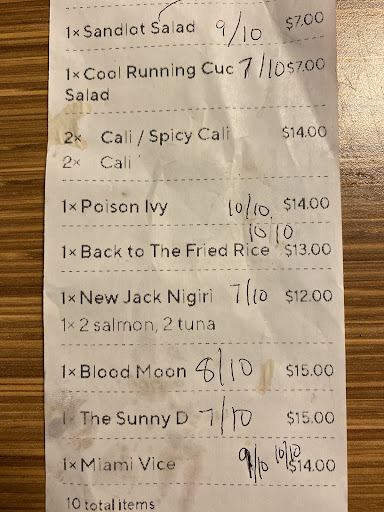 The place is also primarily alcoholic drinks, and seems to be more of a bar with snacks than an actual place to eat. The sushi they eventually brought out was barely cold and for four pieces of small nigiri was almost 20 dollars and across the board their sushi choice basically piled down to tuna, salmon, or California rolls. ( again they were VERY busy so this was ultimately poor circumstances).