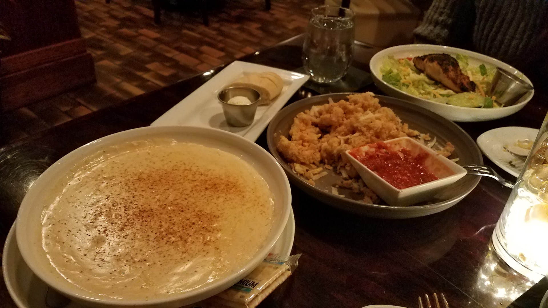 Read moreAtmosphere is perfect for a great night. I came on a Sunday so it was a bit slow so service was a bit lacking with the bartender the only one serving tables and the bar. She did great by the way just maybe have FOHM help out when needed. I ordered wings and the filet. Wings were 5/5 perfectly good and good size. Buffalo sauce wasnât from a bottle and blue cheese was defitnetly fresh and delicious. Filet was 4/5 a bit over cooked for MR on the edges and perfect on the inside. Grill might be too hot or too heavy of a weight to get the sear. Not much of a sear and a chunk of fat. Which I donât mind but mostly Looking for a lean cut when ordering a filet. Sweet glaze isnât necessary on this cut of meat. Itâs a good cut and cooked really well. Maybe add the glaze on the side. Plate was cold so were my mashed potatoes but they were delicious. 4/5 on those. Sweet potato fries are 3/5. Seasoned well but cut too small and thin. Donât serve them with ketchup thatâs just gross. Maybe some honey mustard or honey. Overall had a good time and would...