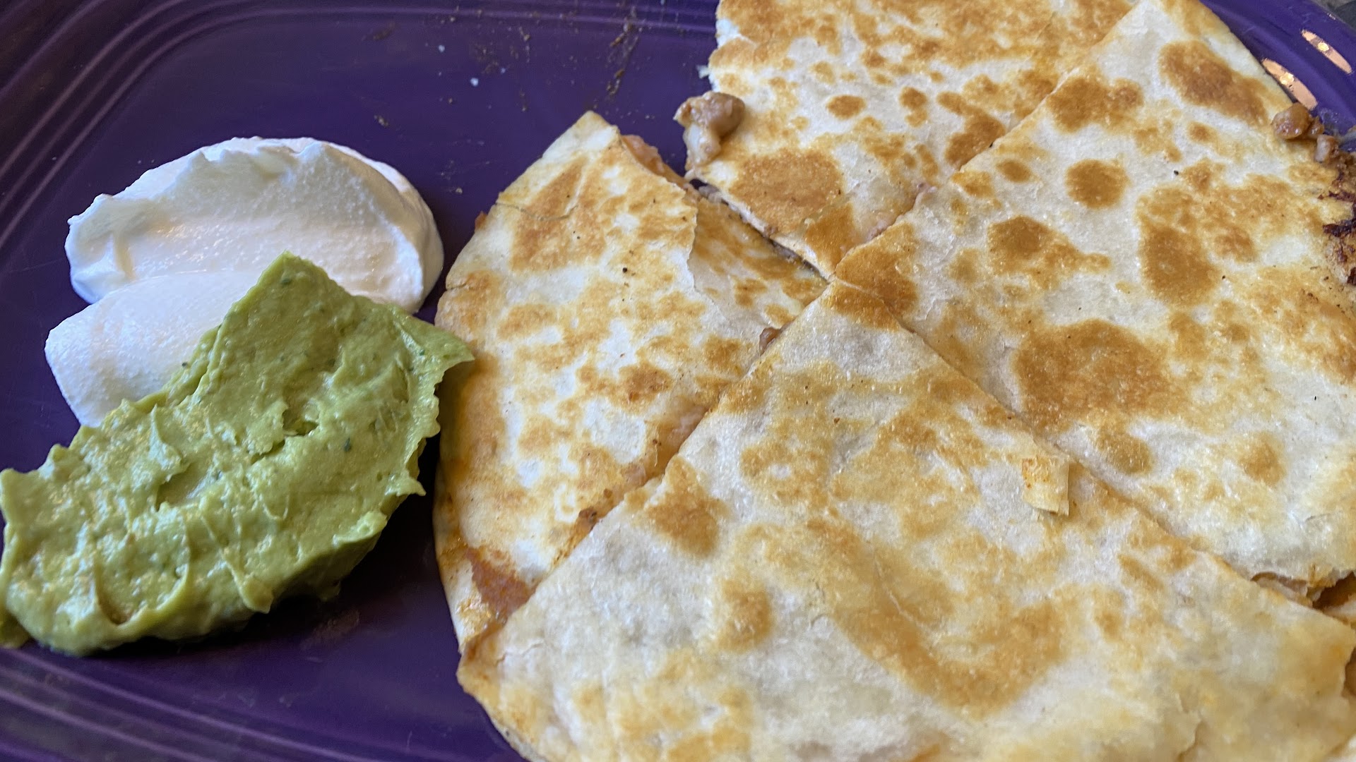 The food was served by another person. I tried their Mexican pizza which came with a side of guacamole and another of some white sauce. I also had a beef taco on the side. The date had a burrito of sorts smothered in queso and some other sauce.