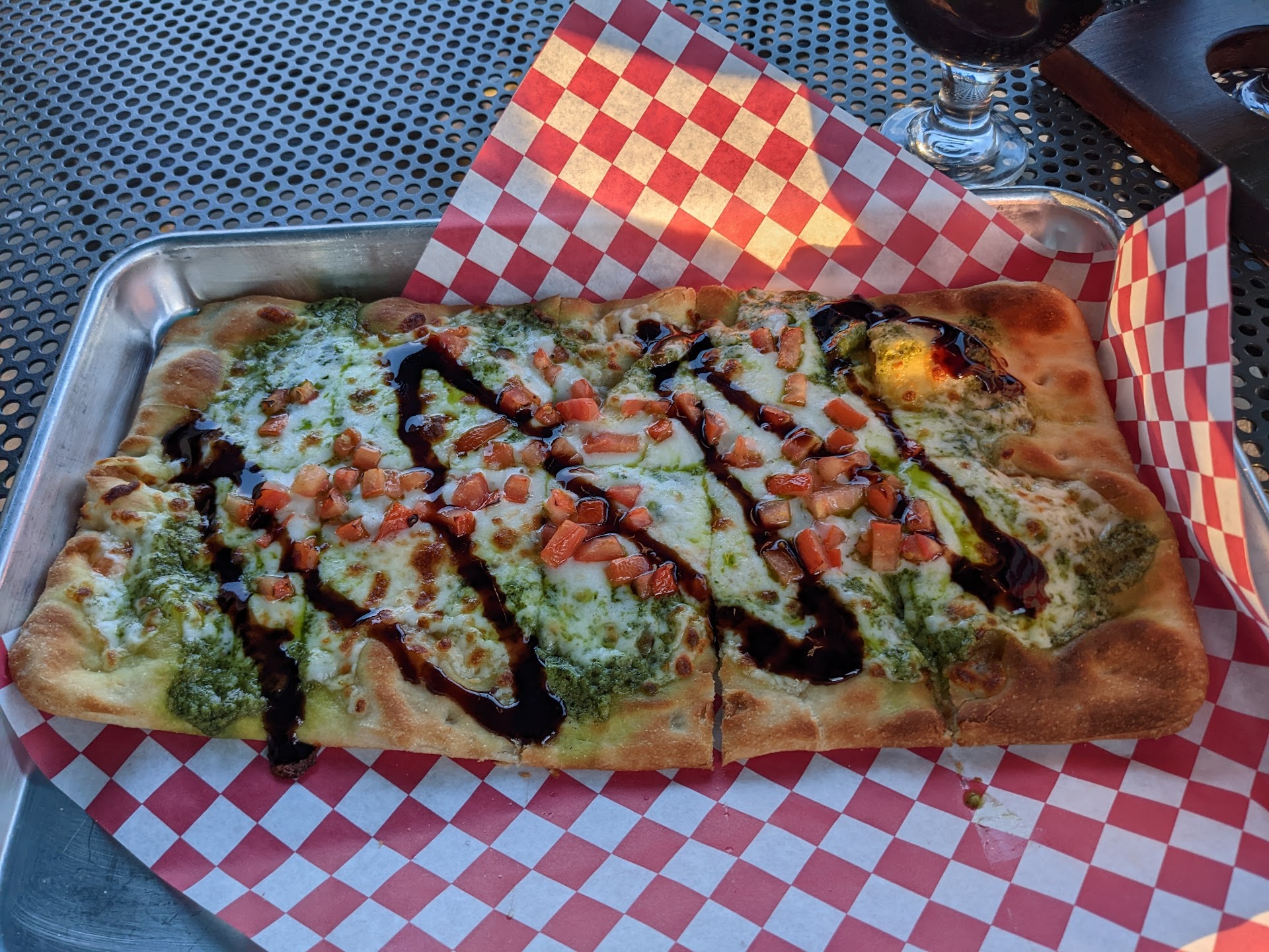 Read moreStopped here to grab some togo food before the Hootie concert. Arrived around 5:15 and the place was packed. Placed food order at 5:30 (pretzel platter, shrimp and Crab flatbread, and Jalepeno popper skins) and grabbed a beer flight. Were told food was taking around 30 minutes. No tables were available so sat at a couple chairs outside and another pair of guest let us place our beer flight on their table. Bought a 4-pack Togo thinking our food would arrive soon. By 6:30 our food still had not arrived. Went inside to ask how much longer it would be. The server said food was on a 45 minute wait. I informed her my order was placed an hour ago. She asked for my table number said she would check on it. About 5 minutes later she came and told us it would be ready soon. We received our food at 6:45. The food and beer were great. For whatever reason that night the staff couldn’t keep up. The wait wound up being more than twice as long as originally quoted. Talking to other patrons, they’ve never seen it like that, so maybe it was a fluke. We will definitely give them another shot because the food we had was delicious (only complaint with it would be two slices of the flatbread had no toppings). We will just pick a day when there is less going on in the area. Overall price was $92 which isn’t bad for all...