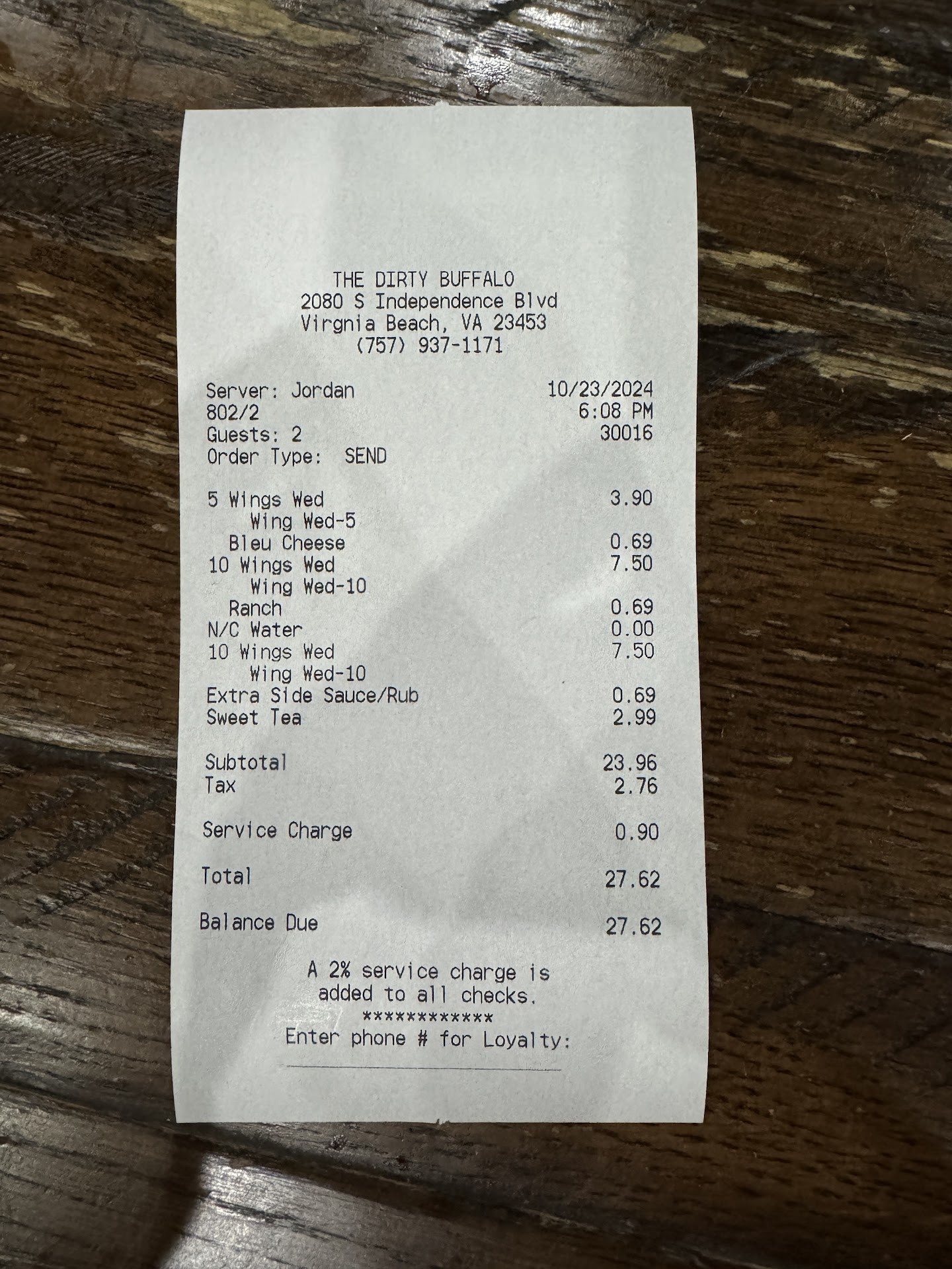 My better half and I live near Hilltop so driving out to Princess Anne Rd should be a sign of our devotion to this sauce. Two bad experiences and I'm changing my mind. Last time, I waited 10 minutes past the "should be ready by" time and my side of dum dum sauce wasn't in the Togo bag and I mistakenly didn't check. Our tip is already on the order. If I'm tipping the Togo server, there's some expectation that the order will at least be right...right? We love this place though so when we wanted wings on our day off yesterday, we tried again. We ordered in advance and I still waited 27 minutes in the restaurant. I'm sure my server saw me getting impatient. This time, the sides were not in the bag and I expressed my frustration. I asked to talk to a manager. Manager wasn't available because there was a manager meeting going on. That shouldn't be a statement any patron hears. If someone needs to let management know what's happening and areas for improvement, there should be someone to talk to. This is my therapy, getting this frustration out is necessary because I lost a half hour of my day off AND left in a way worse mood than when I went in. Two disappointing trips in a row and now I feel like the $80 order was way too much for feeling this upset about food.. I'm more upset about the wasted time. If it's going to take the kitchen some extra time to produce bottles of sauce, reflect that in the time estimate, please! I ask that for future customers. We'll be making the drive to Little Creek next time we want...