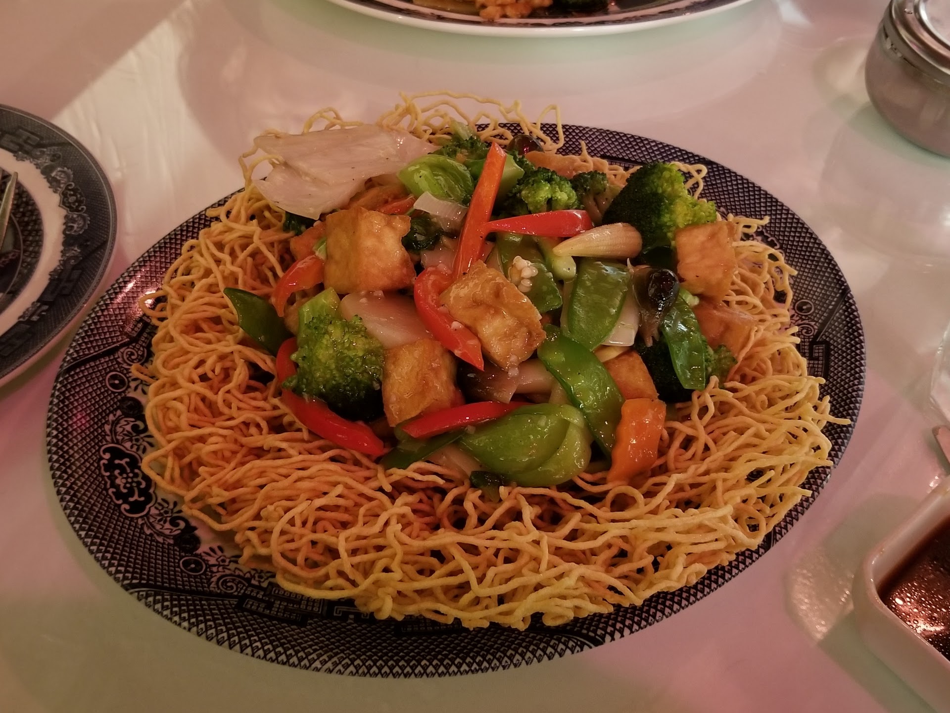 Read moreItems on their vegan menu need explaining. We thought the szechuan cabbage was a cooked dish. All it is is cabbage covered in sesame seeds with a vinegar dressing. Upon seeing the dish, we remarked on it thinking it was supposed to have some red sauce on it; the waitress told us it was a like Chinese salad. We wouldn't have ordered that had we known it was just a salad. I got the tofu veggies and fired noodles dish (also off the vegan menu). It came artfully prepared with fresh vegetables in a bed of noodles that looked like a birds nest. However, the noodles were HARD like ramen noodles. I don't even know if the noodles were cooked. I think they just took the noodles out of a package, designed it like they did, and threw them in an oven to brown and crisp then up. There wasn't any sauce on the dish, just water on the bottom of the plate to help soften the noodles, so there was no specific taste to the dish. Had it said the veggies would be on a bed of HARD noodles, I wouldn't have ordered it because I like soft, COOKED noodles. Plus, the tofu tasted like the water that was in the dish, even with dumpling sauce. Portion sizes are also small. All other Chinese restaurants I've been to have large portions so you can share. These were all personal size. The edamame dumplings are good, however. Probably won't be coming back. Peter Chang's and Jade Villa (on Independence Blvd)...