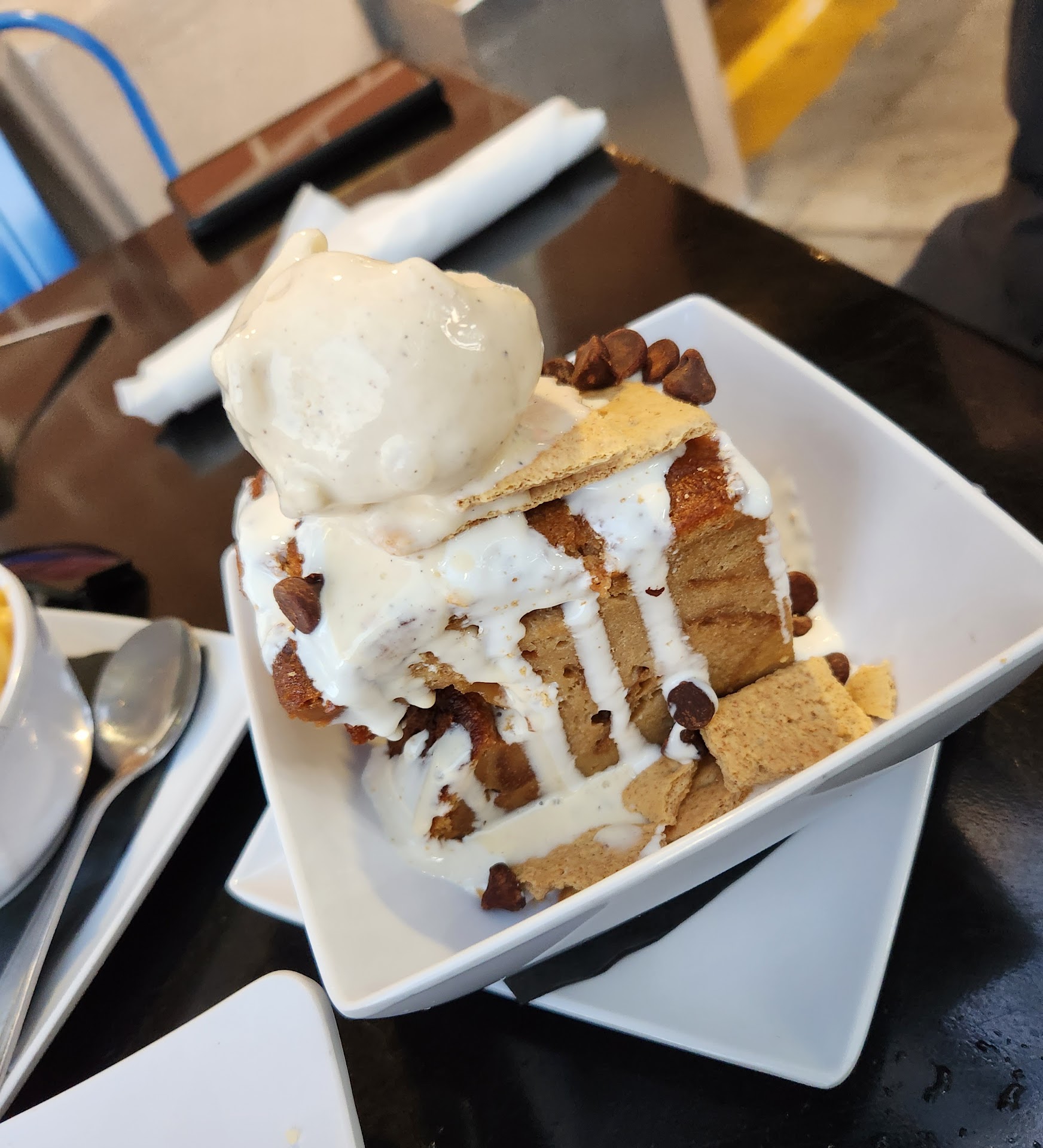 Read moreFirst let me start off by saying this isnt a bad 3. We came in around 9ish when we were sat noone greeted us about (10 minutes) until someone from the kitchen saw us and gave us to a server who took awesome care of us. We ordered the sweet potato hushpuppies and the pimento cheese for apps. I also tried the chicken and pickle soup which was good. For entrees we had shrimp and grits and the triple p burger with crab fries. The housemade chips with the cold pimento cheese dip were good. The hushpuppies needed more sauce (just my preference) but were huge and tasty. Shrimp and grits just needed something more, ive had better elsewhere however our server said they are a good seller. The triple P burger was good you definitely have to like pork because it lives up to its name, my burger needed more of the root beer bbq sauce. My crab fries were very salty but im assuming it was in their seafood seasoning that they use. I couldnt finish them and i like seasoning but that was a bit much. We were going to order dessert but they ran out of the cinnamon roll bread pudding. So we are going to have to go back for that...i will try them again so stay tuned...