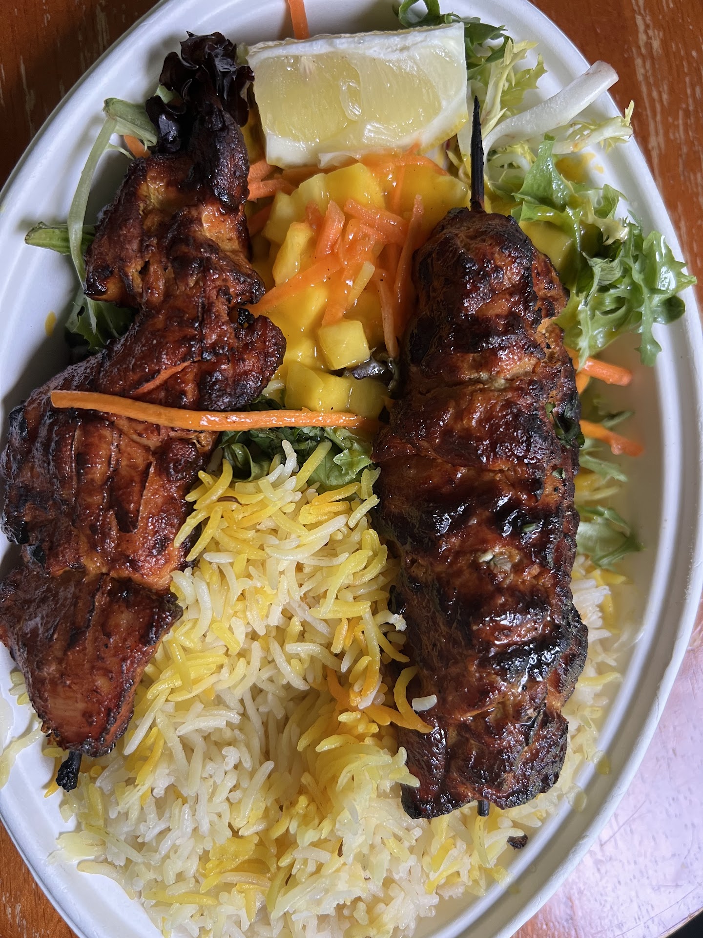 I had the Kabob Bowl with Butter sauce. Beautiful presentation, mango salad and Basmati rice. All was delicious- more unusual were the serving portions! Lots of rice and salad with Mango vinaigrette, dressing. But amazingly the kabobs were very healthy portions of chicken - 2 kabobs with 3 pieces of chicken on each - but I had to cut down each piece to at least 3 or more pieces to eat. Then there’s the organic mango juice -along with other wonderful drink options! Will try to add photos if I can. Highly recommend and prices were very reasonable given the portions and quality. The menu is extensive - so I’m looking forward to returning soon! Go check it out! Such a...