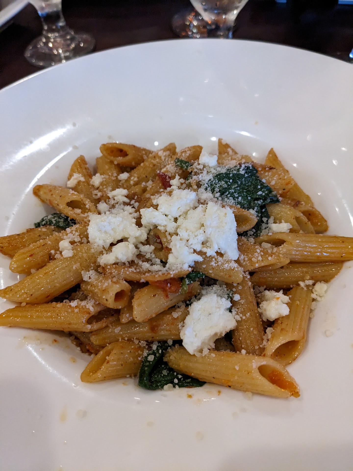 Read moreMy experience at Vino left me so dissatisfied that I felt compelled to leave my first restaurant review. I would rate the overall experience a C-. I was starving and was excited for the bread basket until it came out. The bread wasn't warm or crusty, and tasted store bought. I thought butter would help, but it was this unsalted whipped butter that added very little flavor to the bread. We ordered two appetizers for the table. The fried gnocchi was...fine. Anything cheesy and fried with tomato sauce will satisfy a certain craving, but I still needed to add salt. The burrata came with crackers that one buys at trader joes. I love burrata and was excited to have some, but this cheese was not it. Really good burrata oozes, however the one I was served was rather chunky. Also, the tomatoes were...laking in color. Our entrees also left a lot to be desired. We ordered the penna alla vodka, chicken fettuccine alfredo, and tortellini carbonara. Everything was subpar. The meat was dry, everything was underseasoned, and the peas were far undercooked. The only good thing I consumed at the restaurant was my $8 old fashioned. The service was also not the best. I'm a server myself and try to give customers a good experience, but ours wasn't that engaged with us. I definitely don't need to have a full conversation with the staff, but we never even got a water refill. I was excited to try this place out because the reviews were so positive and the pictures looked appetizing, unfortunately the dining experience didn't match the expectations. I won't be returning...well maybe just for another cheap...