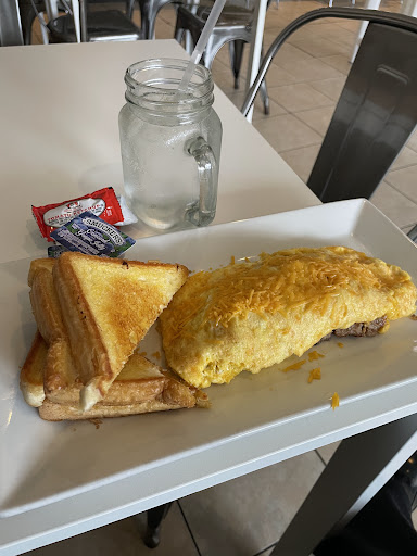 I am here on a Sunday, it’s 1:30pm and they ran out of all “produce” - no veggies, no fruits, no bacon, no grits. The only thing I could order was anything that has eggs, cheese, toast, waffles, or pancakes. So I could just be creative and asked for an egg, sausage and cheese omelet with toast. Far cry from either the shrimp & grits or spinach & mushroom omelet I had wanted to order! Now it’s not the staff’s or cook’s fault but this place is supposedly open until 6pm (per hours on Yelp) but I was told they close at 3pm; and they are out of almost all! I was even excited since I have dropped by a couple of times before and they were somehow closed on those days, even when Yelp hours show they’re open! This turns out to be a quick anecdote of redemption - an experience that could easily be disappointing turned out to be great after all. The ambiance is good. Bright and clean inside. There is counter seating and some cushioned bench seating against the front entrance windows; and ample seating for about 25 to 30 people. There are 3 TV monitors turned on, one showing sports, another music videos and the third seems to be National Geographic or some nature show. The redemption part comes in where the cook whipped up a wonderful omelet (not overcooked and dry). The toast quite simple if you think about it, but it was cooked perfectly - right about of toast with the right amount of butter. Some places would have either burnt the toast or put too much butter it becomes soggy. Oh and I need to tell you, the wait staff washed her hands every time she touched the plate - before serving and before taking the plate away…so much more health conscious and responsible than most restaurants where wait staff don’t wash their hands bringing food to the table, taking dirty plates away, cleaning the tables, putting things away… When it came time to pay, I was charged only $5 - for the inconvenience of not having all the ingredients for all their other menu items - now THAT is great...