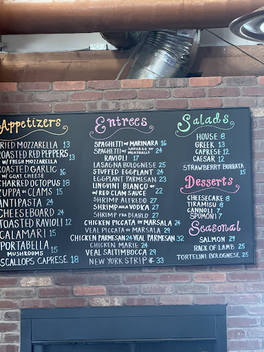 It also seems to have impacted the food quality. The prices are more than reasonable and the portions are substantial (probably too much, tbh). I'm thinking that because of those two factors and the increased expense of rent, they have had to skimp on preparation and quality and freshness of ingredients, because they weren't what we remembered. Bread was solid to start, but things just seemed frozen or pre-prepped from there, particularly the fried items. Chicken Parm was particularly disappointing. Came out in 5 minutes which was an immediate red flag. Definitely seemed like fried from frozen or pre-prepared food reheated, and chicken didn't seem like a breast pounded thin but some kind of cutlet. It was definitely not freshly breaded and fried and tasted like it had melted shredded mozzarella not fresh. Pasta was not quality either, and was overcooked. Was my favorite dish at the old Zia Marie.