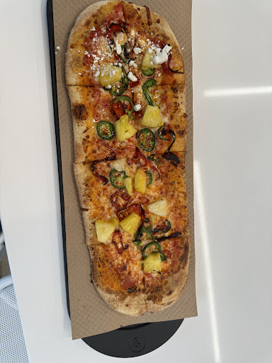 Read moreExcited to try it as seen on my for a long time. Menu is appetizing different offerings or create your own. They have pineapple jalapeño vs buffalo pizza. They have a variety of sauces and cheeses and topppings. The shape is odd and their staple. You finish pizza after comes out of a rolling oven with hot honey, pesto, barbecue sauce and goat cheese or blue chees. It is similar concept to Mods but in rolling oven vs wood fired pizza. The crust on initial bites is nice and pizza is decent. But…..if you don’t eat in five minutes it gets chewy and tough. I personally feel that Mods is was above par with the quality ingredients and the crust and the cost for the size. The atmosphere at Mods also more fun vs...
