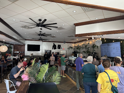 4.3âď¸ 1607 Coffee Company was my pick this week. Unfortunately I did not try any food, but no worries, that just means I have to come back. I got myself an Iced Twix Latte because I donât say no to Twix anything. I got this expecting it to be way too sweet. It was pretty sweet, but it was so good! And I got my husband the Iced Pineapple lime Green Tea. He said it just needs a little honey/sweetener, and it was very good. The shop had cute decorations and all the staff was super friendly. I plan on going back to try some food. I would definitely recommend for a good cup of coffee or tea. Update! Took a friend and her daughter back for their birthdays. I got a Sugar Cookie Latte, and a slice of Key Lime Pie. I was in the mood for sweets and both of those just hit the spot man. My friend got the vegetarian tacos, a Lucky Charm Latte, and a Blood Orange Mimosa. I tried the mimosa, it was really good. She said her latte was good, but she said her tacos were really good. Her daughter got matcha and a Crepeadilla. She said her matcha was very good, but the Crepeadilla⌠that thing was so large 𤣠she said it was so good, and it did look really good. The only downfall was sitting outside. So Many Flies! So definitely sit inside. After coming back and trying food, I would definitely recommend this place to anyone...