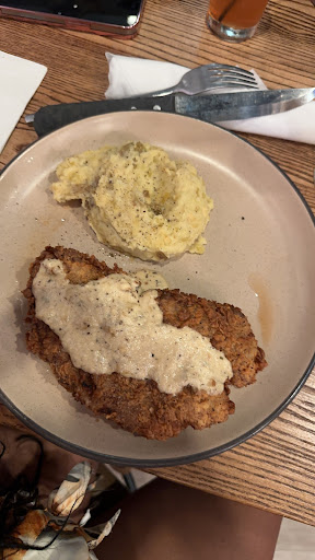 Read moreThe decor is very cute. The food was alright, but is a little pricy. My boyfriend got the Eggs Benedict Florentine and really enjoyed them though the poached eggs weren't runny. I got the Chicken and Waffle Casserole. I was expecting a portion of a casserole but it was more so a sandwich which was fine but it was just a fourth of a sandwich I wouldâve expected two sections like the Eggs benedict or maybe add some fresh fruit to fill up space on the plate. And it definitely needed a sauce since the French toast bottom was a bit thick and the chicken was flavorful but a little dry and the waffle top was very, very crispy and plain. The description listed maple syrup so maybe it was supposed to come with some but it didn't get on the plate I ended up asking for a side of syrup which helped. And I didn't realize til I got home that mine was supposed to have cheese which it didn't have on it. The hash browns were very well seasoned and very good. Overall since this was still the soft opening it wasn't bad but there are some areas that need work. I'll probably wait a few months and then maybe try them out for...