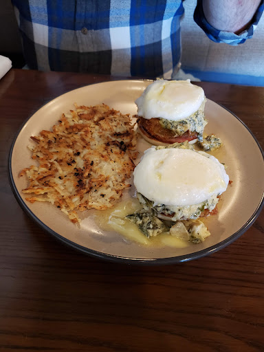 Read moreThe decor is very cute. The food was alright, but is a little pricy. My boyfriend got the Eggs Benedict Florentine and really enjoyed them though the poached eggs weren't runny. I got the Chicken and Waffle Casserole. I was expecting a portion of a casserole but it was more so a sandwich which was fine but it was just a fourth of a sandwich I would’ve expected two sections like the Eggs benedict or maybe add some fresh fruit to fill up space on the plate. And it definitely needed a sauce since the French toast bottom was a bit thick and the chicken was flavorful but a little dry and the waffle top was very, very crispy and plain. The description listed maple syrup so maybe it was supposed to come with some but it didn't get on the plate I ended up asking for a side of syrup which helped. And I didn't realize til I got home that mine was supposed to have cheese which it didn't have on it. The hash browns were very well seasoned and very good. Overall since this was still the soft opening it wasn't bad but there are some areas that need work. I'll probably wait a few months and then maybe try them out for...