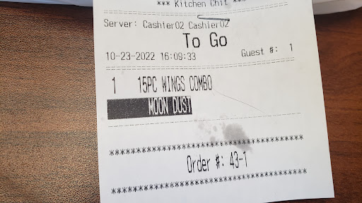 I got the 15piece combo that comes with a drink and some fries, I got moon dust on the wings, not even sure what these taste like but I feel like it's close to old bay. Average from...