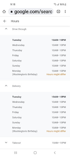 Please update your drive thru hours. 10 pm is incorrect it's 8:56 pm. Drove from Bon Secour Hospital with department order and coupon only valid the 14th and 15th. CLOSED. Delivery also says 10 pm. It is just like a owner to blame a customer when their operational hours are incorrect. How long have you been closing at 9 pm? It is simple to update your hours so patrons can plan better. Having been the youngest General Manager of a major restaurant chain here in Virginia in the late 80`s it was my responsibility to inform the customer of any changes. Since we did not have tools such as the internet I would communicate by hanging signs at the register and/or marquee. I did not allow my staff to breakdown early in case we got last minute customers. If a customer was in line when we closed whether inside or the drive thru we would honor their orders even if we had to cook the item to order. With restaurant closing because of poor sales and staffing shortages you have to wonder if Arby's wants my business. You closed up earlier than your 9pm to save money instead of putting your...
