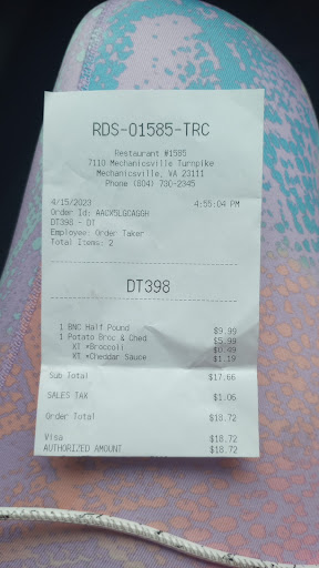 We went through the drive-thru and ordered a half pound beef and cheddar and broccoli and cheese baked potato with extra broccoli and extra cheese which came to a whopping total of $18.72. The price of Arby's anymore is ridiculous, on top of all of this the service was not bad but they got really confused. When we first pulled up they handed us a strawberry lemonade which wasn't a part of our order, then realized it wasn't and asked for it back and then turned around and handed us a sweet tea as to which they never figured out it wasn't even ours. Then proceeded to stand there with a dumbfounded look on their faces. We were only going there because the friend that was with us wanted something, we personally do not go there because of the prices.