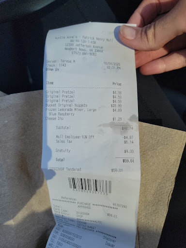 Read more1/23/23 Unprofessional, Unprepared and Unaware. These 4 young women in the kiosk fooled no one., it was obvious they did not know what they were doing. They got my daughters money but I was not going to just hand them money then wait for 30 mins for a pretzel and a drink. When she finally received her pretzel it looked like a biscuit and the Rep explained that their pretzels dont come premade and had the nerve to be short with me because I requested my daughters money back. My advice is to you young ladies either learn your business or loose your business. The tell sign for me is when you all were grouped together looking at the the dough like the pretzel was going to make itself that's when I knew...