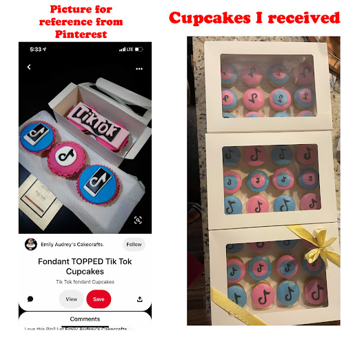 I was really really hoping to love these cupcakes and was super excited to see the end result… unfortunately that wasn’t the case. I asked for 3D fondant tiktok cupcakes. But instead I received something completely different from the pictures I sent Ava. We spoke over the phone. I told her exactly what I wanted and again, referred to the picture sent. She charged me $127. I checked with other bakers just to reassure my self that I wasn’t over reacting, they have all said they definitely would not have charged a client $127 for the cupcakes I received. I reached out to Ava very nicely. All I got from her were lame excuses. She kept telling me to refer to the invoice. But I have screen shots of what I wanted, pictures to show her how I wanted them.. and even a text saying what I wanted. For future clients !!!MAKE SURE THAT AFTER TALKING TO HER ON THE PHONE, HAVE HER WRITE WORD BY WORD WHAT YOUR EXPECTATIONS ARE!!! I’m sorry but a refund of half the amount would’ve been nice because again, these are not worth what I paid for. I am attaching the pictures i sent for reference which I found on Pinterest… I didn’t even get the little “TikTok” sign/banner and the symbols DONT EVEN LOOK LIKE TIKTOK symbols!!! Smh The symbols Ava made are very very very sloppy and not cute at all. I’m also attaching what I actually got. Left is reference picture.. right is...